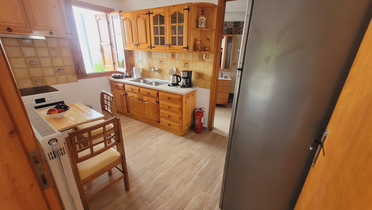 A peaceful countryside home among fauna and flora In the eastern part of Pelion at Makrirachi village. A quiet and beautiful suite located in a lush green area, surrounded by apple trees orchard and only 5 minutes drive away from famous and beautiful Agia Saranta beach and Chorefto beach. Expand your mind, open your heart and get in the rhythm of the magic Mountain Pelion. The road to the house is asphalt country road. common in this area. If you prefer, we will be happy to pick you up.