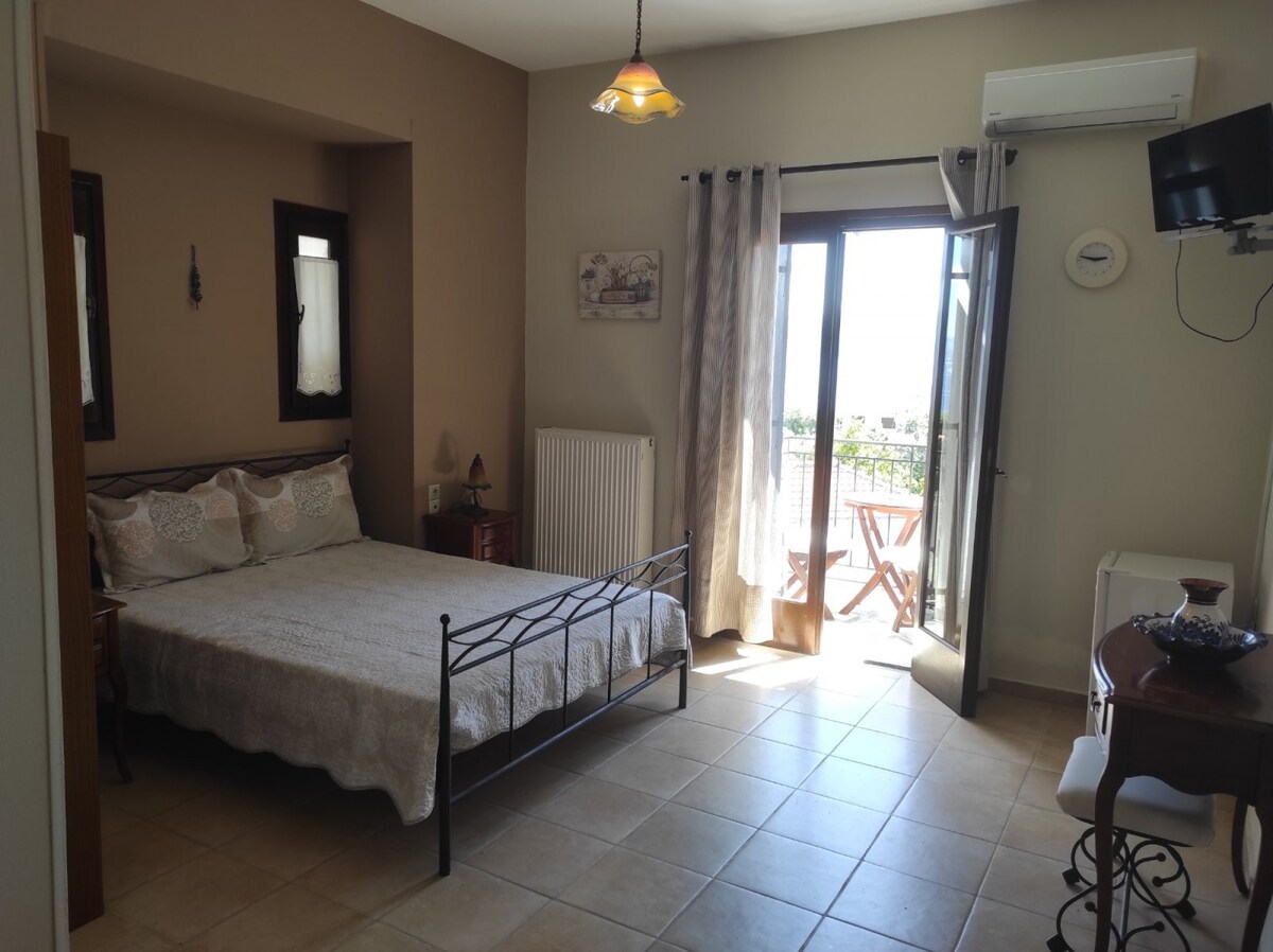 A cozy retreat for couples or solo travelers, blending comfort with traditional Pelion charm. Comfortable and welcoming, our Double Rooms are perfect for couples or solo travelers looking for a peaceful retreat. Thoughtfully decorated to reflect the traditional charm of Pelion, they offer the perfect space to unwind after a day of exploration.