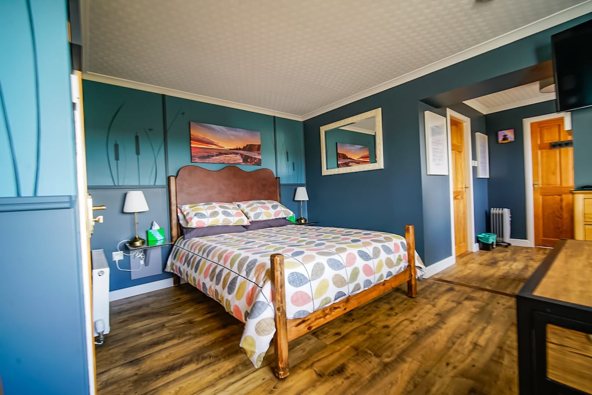 El dormitori «king size» es troba a la planta baixa amb vistes a Thurso Bay i Dunnet Head. Dins de l'habitació hi ha armaris encastats, punts de càrrega i cafetera i nevera. A l'habitació se serveix un esmorzar continental. La nostra casa està situada a sobre del port de Scrabster, a 15-20 minuts a peu del ferri Orkney. Si ho prefereixes, és un allotjament fantàstic si estàs treballant a la zona o explorant Caithness. Si passes per la NC500, és ideal com a punt de parada