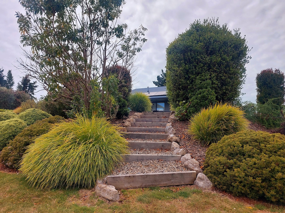 Relaxa't en aquest apartament espaiós i assolellat amb unes vistes impressionants de la badia de Tasmània, les muntanyes i un jardí frondós. Situat en un barri tranquil a només 5 minuts en cotxe de la platja de Tahunanui i de l'aeroport de Nelson, el nostre espai ofereix tot el que necessites per gaudir d'una estada còmoda, incloent-hi: • Accés independent i entrada privada • Banyera exterior i vistes panoràmiques • Barbacoa i seients • Netflix/internet ràpida • Cafetera de pistó i Airfryer • Rentadora • Aparcament fora del carrer • Normalment, l'arribada i la sortida són flexibles.