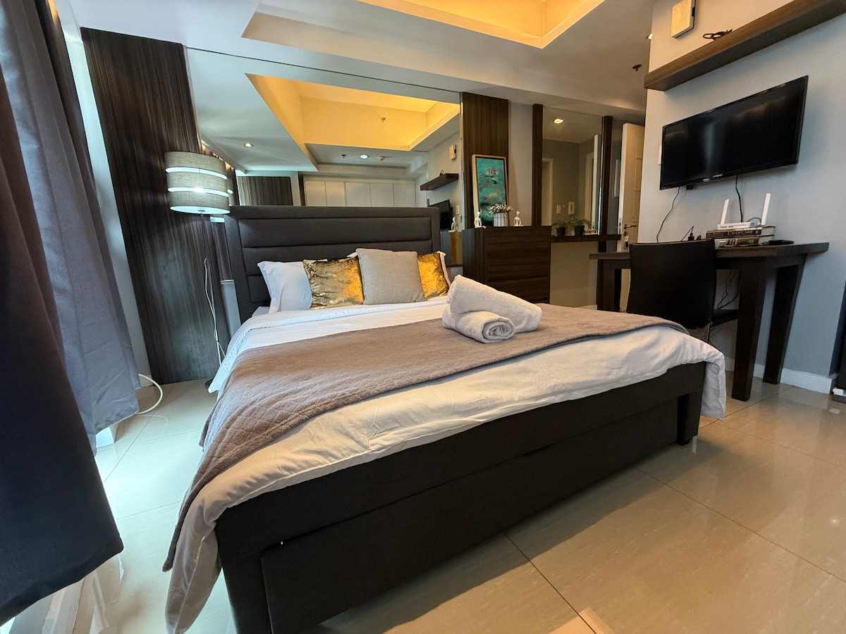 MABUHAY! Tant si estàs de viatge de negocis com si estàs de viatge amb la família o viatges per l'Àsia, no busquis més. El que una vegada va ser un apartament d'un dormitori s'ha convertit en un ampli estudi (quaranta-tres metres quadrats!). Situat en un dels edificis residencials més alts de les Filipines, pot ser la teva llar lluny de casa. Si les dates que has seleccionat estan reservades, també pots consultar els nostres altres estudis gestionats fent clic al meu perfil.