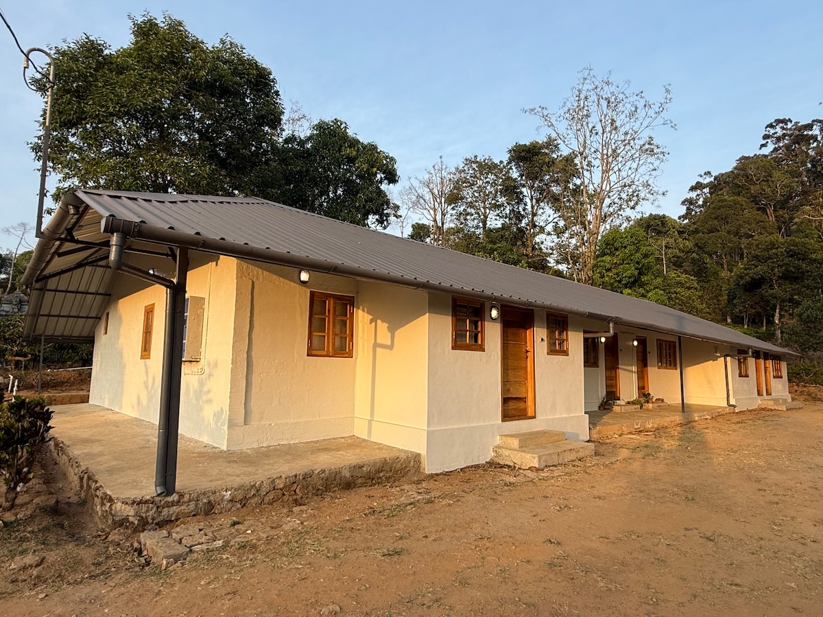 Escapa't a una vil·la de luxe nova i espaiosa de 2 dormitoris i 2 banys al cor dels Ghats occidentals, a prop de la pintoresca ciutat de Munnar. Envoltada de vistes panoràmiques a la muntanya i situada en una plantació de cardamom, aquesta serena escapada ofereix comoditats modernes, una cuina totalment equipada i espais tranquils per relaxar-se, la qual cosa la converteix en una escapada ideal de la teva rutina quotidiana. Aquest allotjament, perfecte per a famílies, parelles o grups petits, et convida a experimentar la bellesa de Kerala amb tot el seu luxe i serenitat.