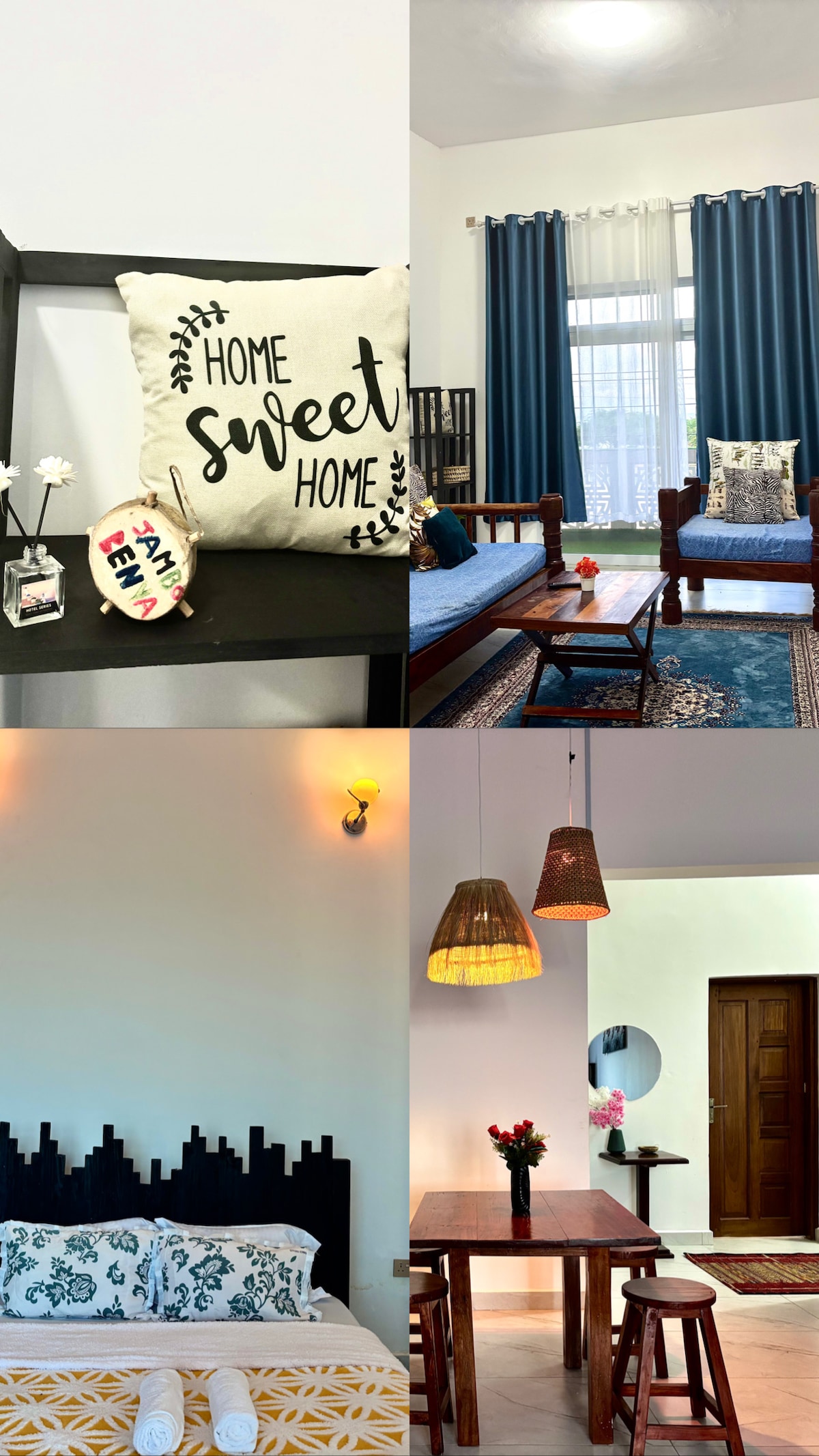 Aquest pis d'un dormitori és perfecte per a parelles i viatgers en solitaris, prou tranquil per treballar a distància. El pis es troba a la zona més tranquil·la de Malindi, a menys d'un minut a peu de la platja, i té una entrada privada al complex. També pots gaudir de la piscina. Els restaurants es troben a poca distància a peu per la platja (per exemple, a 5 minuts de Coco Beach i a 2 minuts de Mariposa). El supermercat i els caixers automàtics estan a uns 10 minuts en boda boda o en tuk-tuk. L'aeroport és a 12 minuts en cotxe. La nostra personal d'neteja està disponible sense cap cost addicional.
