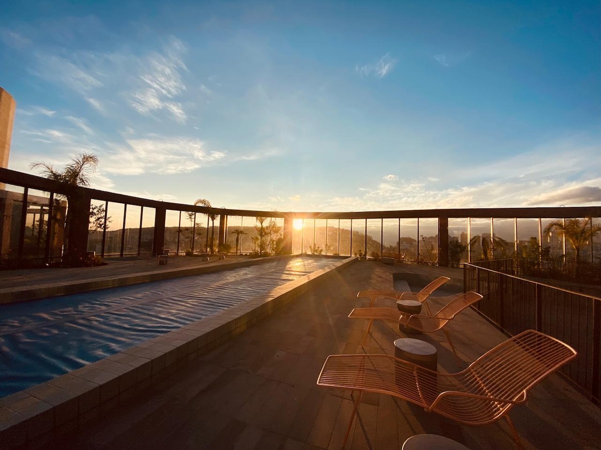 Estudi modern i nou a la 14a planta amb vistes directes al parc de La Carolina. Serveis de l'estudi: • Wifi d'alta velocitat de fibra òptica • Televisor intel·ligent QLED de 55" • Llit ultracòmode • Cuina totalment equipada • Bany modern • Pany intel·ligent • Seguretat les 24 hores Espais socials (17a planta): • Gimnàs • Zona de coworking amb wifi • Sala de jocs • Zona de barbacoa • Jacuzzi (disponible només per a estades de més de dues nits) Ubicació privilegiada, a només 15 minuts del metro de Quito, centres comercials i restaurants.