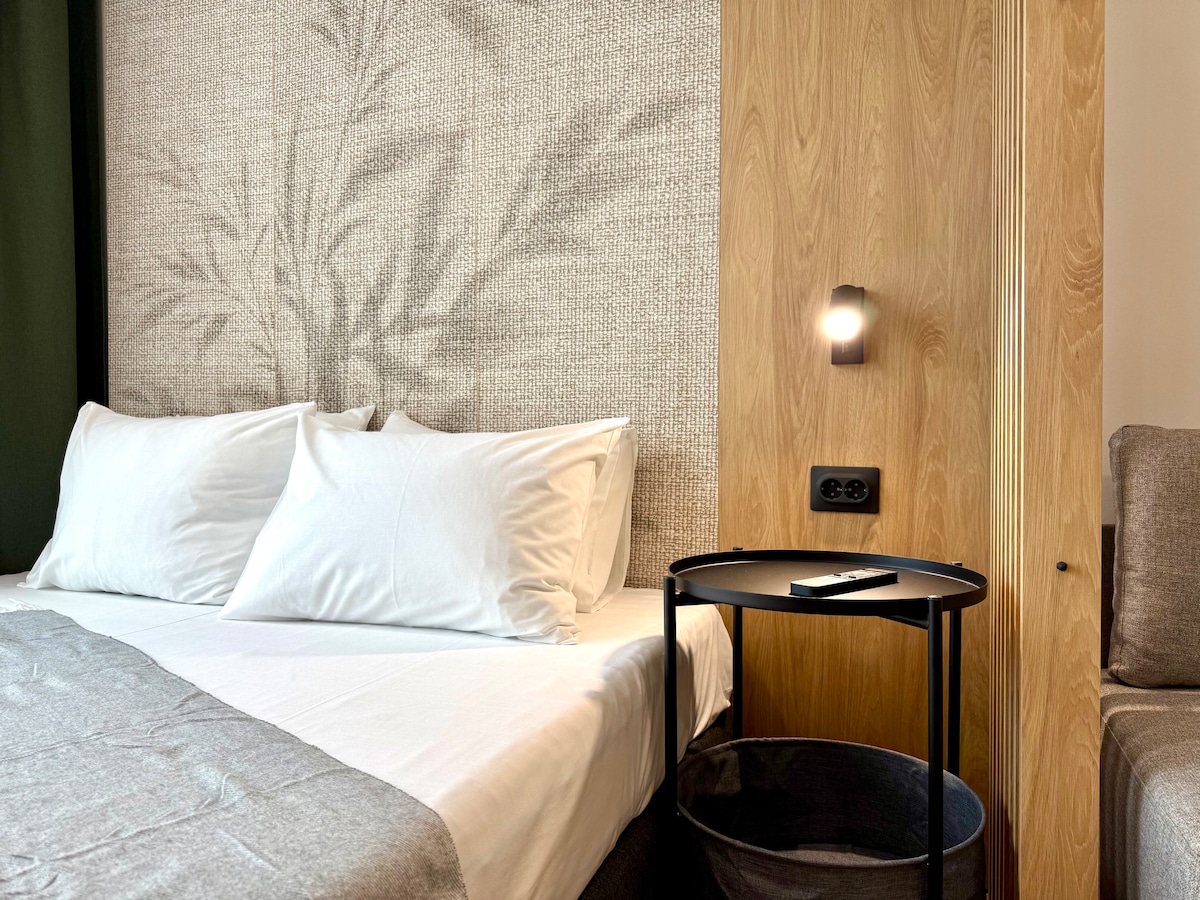 Et dono la benvinguda al meu estudi boutique a l'àtic, als peus de Vitosha. Espai lluminós, minimalista i tranquil amb unes vistes precioses a la muntanya i a la ciutat. Situat en una zona tranquil·la i segura, perfecta per a passejades nocturnes i relaxar-se lluny del centre. El llit té un matalàs Magniflex i coixins per a un descans excel·lent. L'estudi té una cuina totalment equipada, wifi ràpid i una acollidora zona de treball/menjador. Neteja, tranquil·litat i accés fàcil tant a la muntanya com a la ciutat.