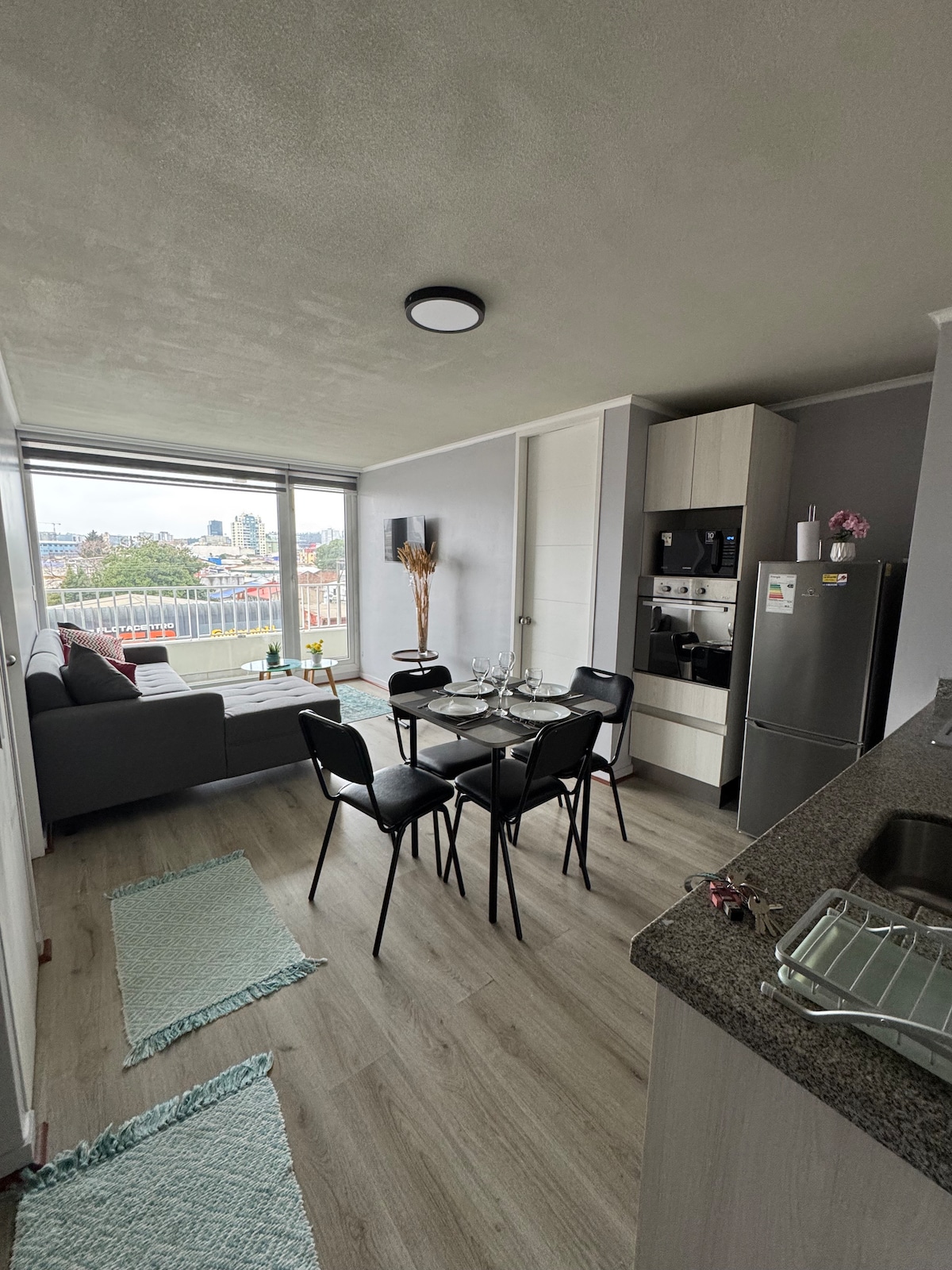 Pis còmode amb 2 habitacions a pocs passos del centre de Concepcion, lluminós i modern, amb una vista cèntrica, transport a la porta i aparcament privat. L'apartament és nou, té balcó, televisor intel·ligent, Netflix, wifi de fibra òptica, a metres del centre comercial orgànic i amb mirall principal, té un balcó i amb tot l'equipament necessari per a una gran estada i una experiència meravellosa a la ciutat
