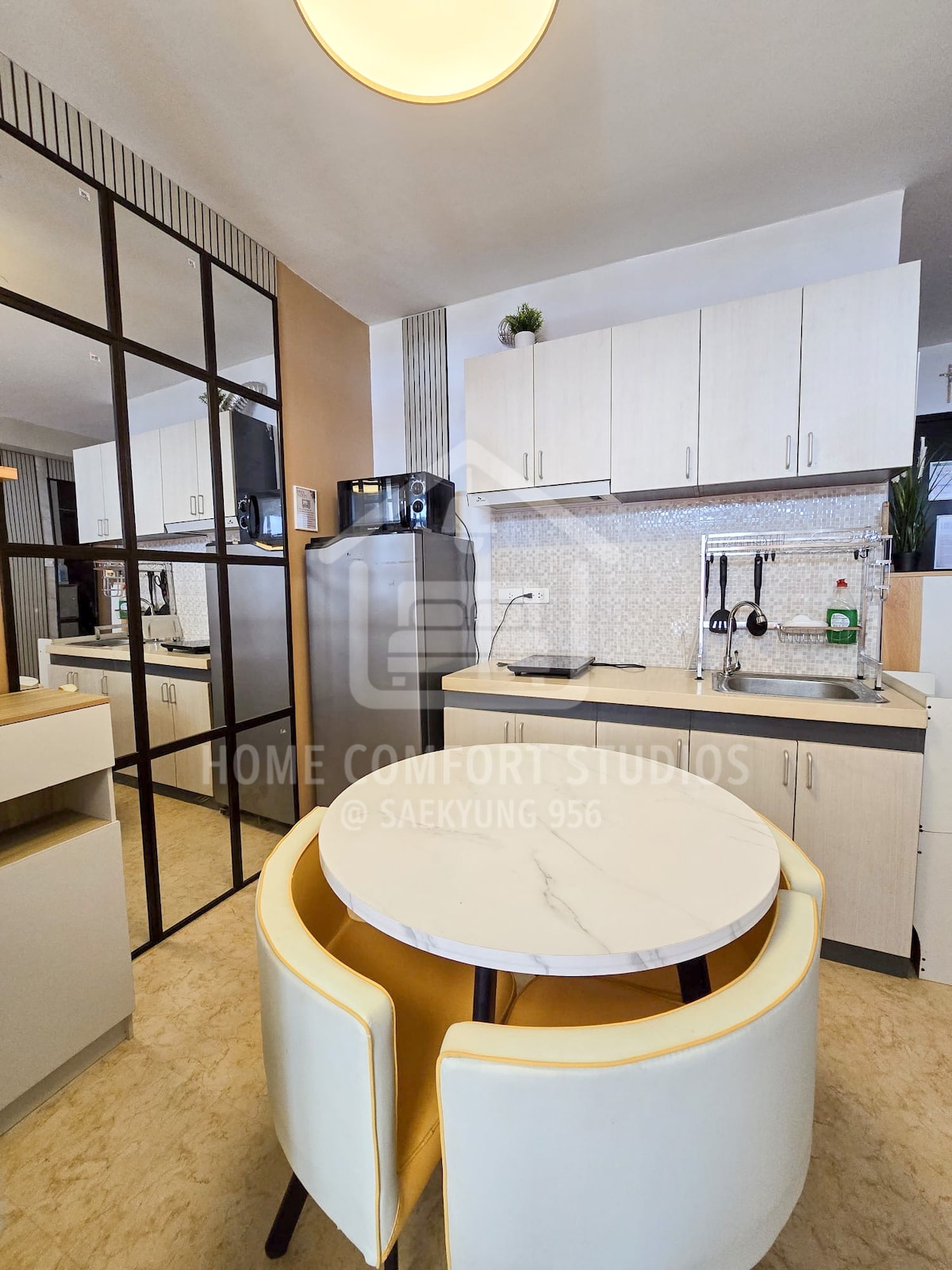 Welcome to our chic Parisian-inspired studio type condo, where elegance meets modern comfort. This stylish unit boasts of tasteful decor, reminiscent of the timeless charm of the city. Enjoy the view of the the pool from our mini patio where you can sip your coffee in the morning while watching the sunrise. Unwind, Netflix & chill in the cozy living space adorned with contemporary furnishings. Conveniently located since it’s just a 2 min. walk to Ateneo de Cebu & a 30 min. drive to the airport.