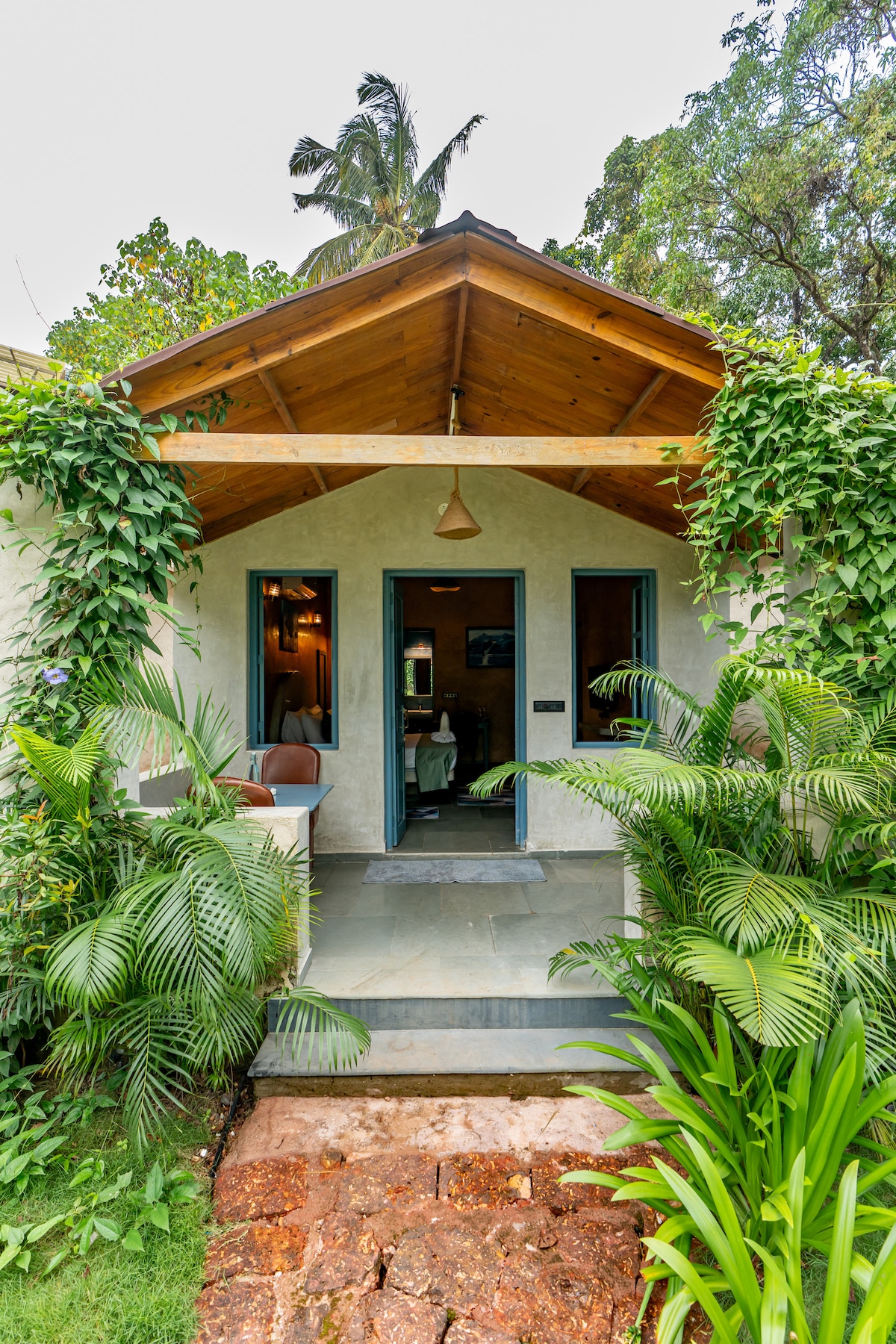 Habitacions Deluxe amb piscina a la platja d'Arambol | Encant rústic de Goa Gaudeix de la barreja de tradició de Goa i comoditat moderna a pocs passos de la platja d'Arambol, al nord de Goa. Cada habitació Deluxe disposa d'interiors de fusta rústica, un llit de matrimoni còmode, bany privat, aire condicionat i wifi. Gaudeix d'una piscina compartida entre palmeres, un porxo tranquil i una vegetació exuberant. A només 2 minuts de la platja, a prop del llac Sweet Water, de llocs per fer ioga i de cafeteries: l'escapada tropical perfecta per relaxar-te i trobar la serenitat.