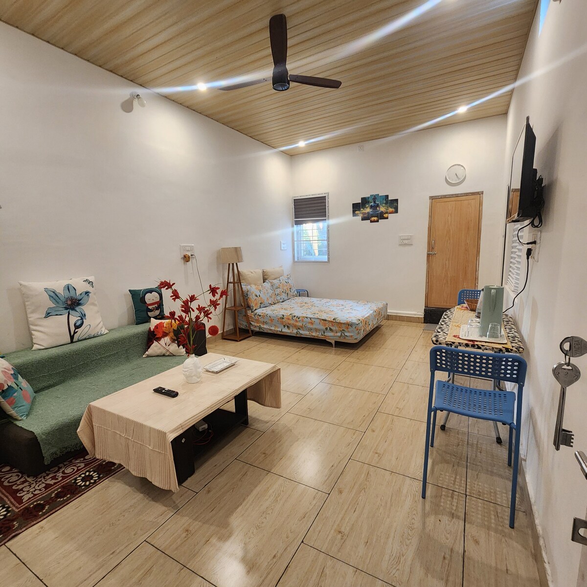 House of Thoughts és una estada tranquil·la i creativa a Mysore per a artistes, arquitectes i motxillers. Gaudeix d'un pati arbrat, un llit àtic de somni i un disseny minimalista i conmovedor. Camina fins al llac Lingabudi per observar ocells o anar en bicicleta per carrils tranquils: bicicletes disponibles a petició. A prop de cafeteries, llocs de ioga i el palau, és un espai perfecte per fer una pausa, reflexionar i connectar amb viatgers amb idees similars.