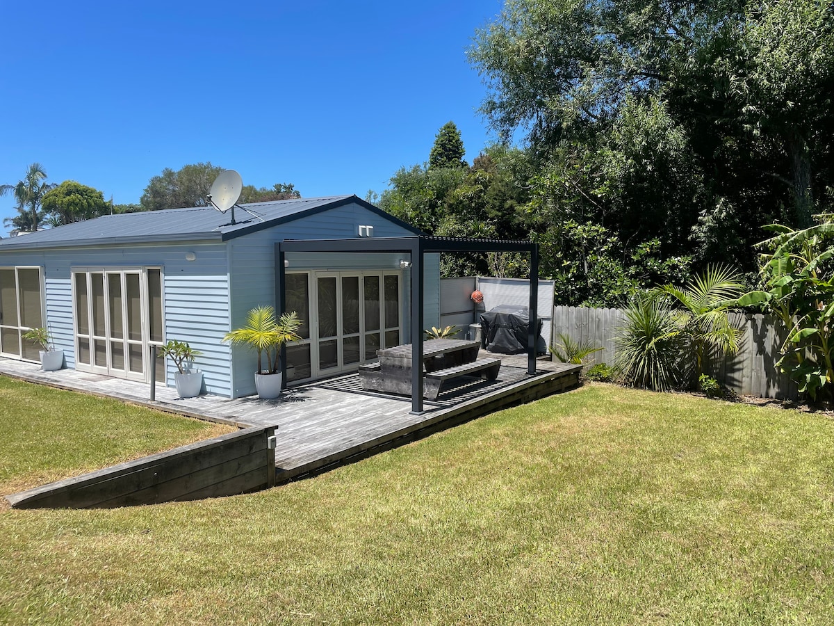Un còmode bach modern al centre de Mangawhai Heads, construït per al sol i amb una enorme terrassa amb vistes al mar. A 5 minuts a peu de la riera/port per nedar de forma segura, a poca distància a peu de cafeteries i botigues, a prop del camp de golf. L'increïble parc infantil MAZ està just al final de la carretera. Secció totalment tancada amb molta gespa per a nens, a més d'un petit parc infantil d'aventura. Cuina ben equipada, moltes joguines, joguines i llibres per a nens, a més de un petit televisor intel·ligent. Altaveus sense fils per a la música, Nespresso. Llençols BYO