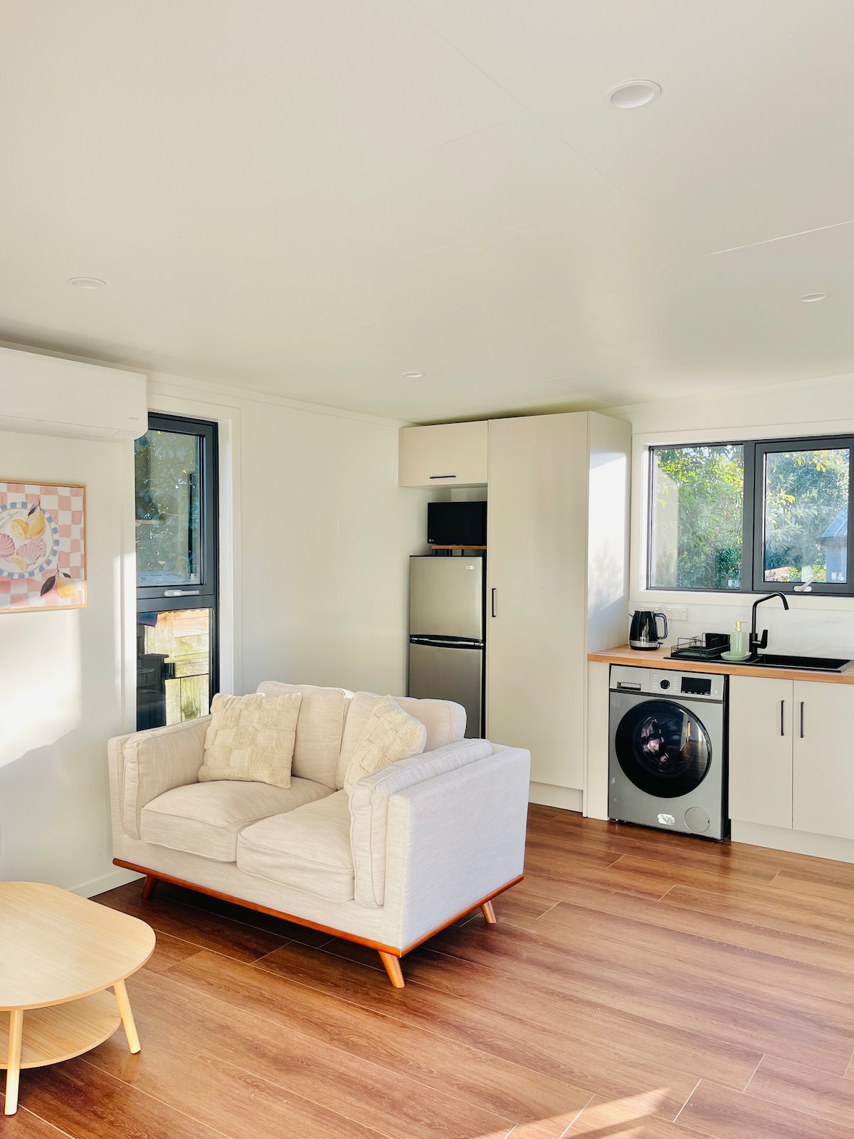 Escapa't a la nostra acollidora minicasa a Wattle Downs, al sud d'Auckland. De nova construcció i dissenyada amb cura, ofereix comoditat i tranquil·litat. A l'interior, troba una distribució de planta oberta amb una sala d'estar i una cuina americana ben equipada. El dormitori disposa d'un llit «queen size» per gaudir d'una nit de descans i bany privat. Gaudeix d'un passeig recomanat al voltant de la costa o en bicicleta. El proper camp de golf Wattle Downs ofereix 9 forats. Convenientment situat per viatjar a l'aeroport i al districte financer d'Auckland en cotxe.