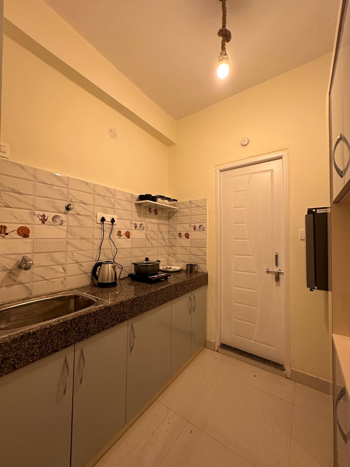 El nostre apartament de 2BHK és un lloc acollidor que és perfecte per a famílies, amics o fins i tot viatges de feina. És espaiosa i té tot el que necessites: dormitoris còmodes, una sala d'estar relaxant i una cuina si et ve de gust cuinar. La ubicació és molt còmoda i té fàcil accés a menjar, botigues i transport. Senzill, net i còmode: tal com hauria de ser una estada. Com a traca final, també oferim accés a l'ascensor. També tenim disposicions addicionals •Dispensador d'aigua •Microones • Accessoris de cuina