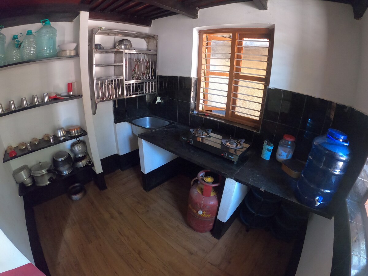Acollidor apartament d'1 habitació i sala d'estar a Gopal Homestay amb opcions amb i sense aire condicionat, perfecte per a parelles, viatgers solitaris o grups petits. Gaudeix d'una cuina totalment equipada, wifi ràpida, un sistema d'energia de reserva fiable i un aparcament segur. Situat en un barri tranquil i segur a pocs minuts de platges precioses, el temple de Krishna, Manipal i el centre de la ciutat d'Udupi. Hi caben 2 persones còmodament amb un llit doble. L'accés independent i el circuit tancat de televisió garanteixen una estada sense problemes. Cal un document d'identitat oficial vàlid.