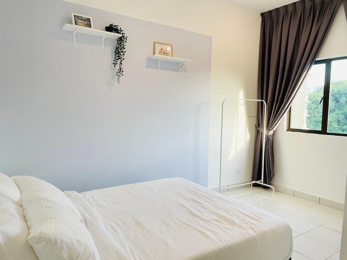 Explora el nostre acollidor estudi, amb capacitat per a 2 o 3 persones, amb un llit «queen size» i un sofà llit. A només 15 minuts en cotxe de KLIA T1/T2, l'allotjament està envoltat de molts restaurants, branques de menjar ràpid, botigues de menjar ràpid i bugaderia, tot a poca distància a peu. Gaudeix de tots els serveis, com ara el parc infantil, la zona de barbacoa, el gimnàs i la piscina, amb seguretat les 24 hores. * No es pot deixar l'equipatge abans de les hores d'arribada. A causa del disseny de l'edifici, cal caminar una escala de 10 graons per agafar l'ascensor.