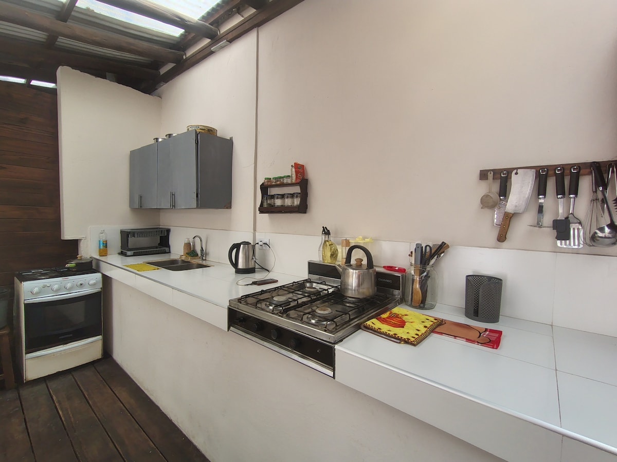 Increïble casa de micro formigó al bosc, respectant la natura local, un entorn únic amb un llit de mida queen, una taula d'escriptori, 2 cadires i WiFi. Bany amb dutxa, lavabo, vàter. Cuina americana amb bacha, pavo elèctric, microones i nevera amb congelador, NO apta per cuinar. Molt lluminós amb el mar a 700m i el centre comercial a 600m. Aquesta bonica casa s'amaga darrere de la casa principal amb total privadesa i autonomia. Tostador exterior per a ús comú del lloc. Benvingut!