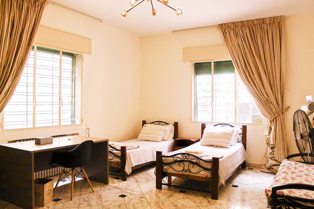 Les reserves inclouen conserge, electricitat les 24 hores i aparcament privat. ★« Vaig gaudir d'una estada fantàstica! La casa era increïble, especialment el jardí». Pis vintage de 200 m² a la planta baixa amb jardí privat, zona de barbacoa i forn de pizza, perfecte per a reunions Neteja ☞diària + esmorzar + banyera d'hidromassatge (càrrecs addicionals) Sistema de so de☞ Netflix i Bluetooth ☞Purificador d'aire disponible a petició ☞Situat a Achrafieh Hotel Dieu Str., a 15 minuts de l'aeroport, a 5 minuts a peu del Museu de Beirut, a 10 minuts de la vida nocturna de Badaro i MarMikhael