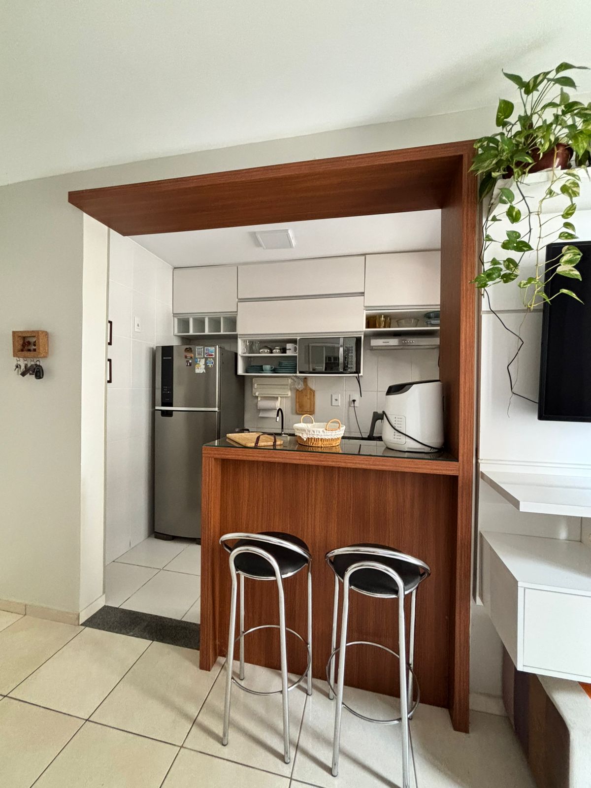 Gaudeix d'un apartament modern, renovat i complet per a l'oci, la feina o els esdeveniments. Sala d'estar espaiosa amb sofà llit, televisor i aire condicionat; cuina americana equipada (fregidora d'aire, cafetera, microones, fogons, nevera, olles i estris); balcó amb hamaca i vista privilegiada; suite i dormitori amb llit doble, bugaderia amb rentadora. Condomini amb piscina, gimnàs, pista, parc infantil, zona de barbacoa, restaurant amb lliurament a domicili, botiga de conveniència i seguretat les 24 hores.