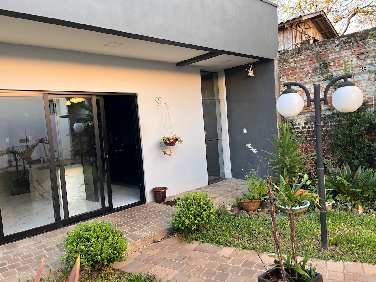 Casa amb allotjament per a un màxim de 4 persones, amb dos dormitoris, amb llits de matrimoni, un d'ells amb aire condicionat i un aire condicionat més a la sala d'estar, situat a 300 m de l'avinguda principal i a 600 m del parc de rodeo Marau, també a prop de la unitat de racions BRF, fàcil accés als departaments de bombers, centre de salut, mercats, farmàcia.