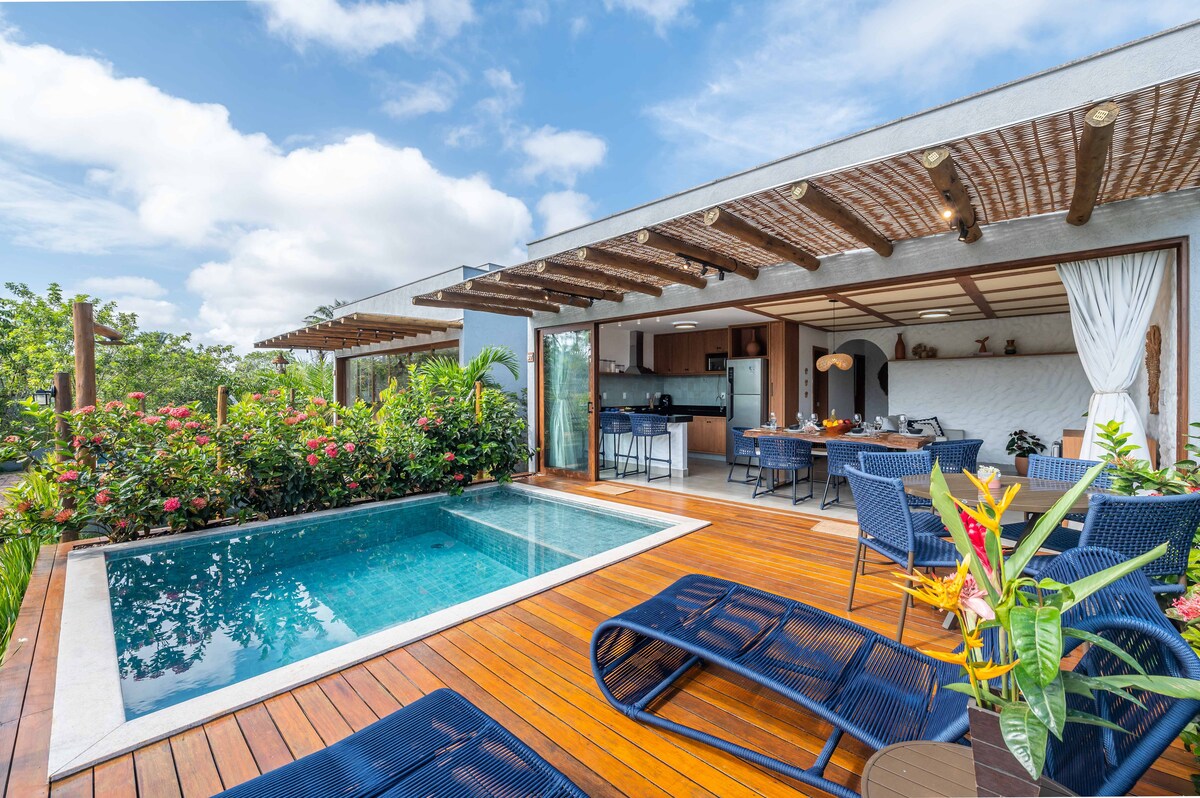La Casa Blava: viu l'essència de la natura a la platja més conservada de la península de Marau. Allotja't en una casa nova, sostenible i il·luminada, envoltada de l'exuberància de la natura i a 5 minuts a peu del mar. Perfecte per a un màxim de 4 persones, es troba al tranquil poble d'Algodões, a només uns passos dels millors restaurants, cafeteries i mercats. Relaxa't amb el soroll dels ocells i les onades de la platja d'Algodões, una joia conservada de la costa brasilera. La teva estada inoblidable comença aquí!