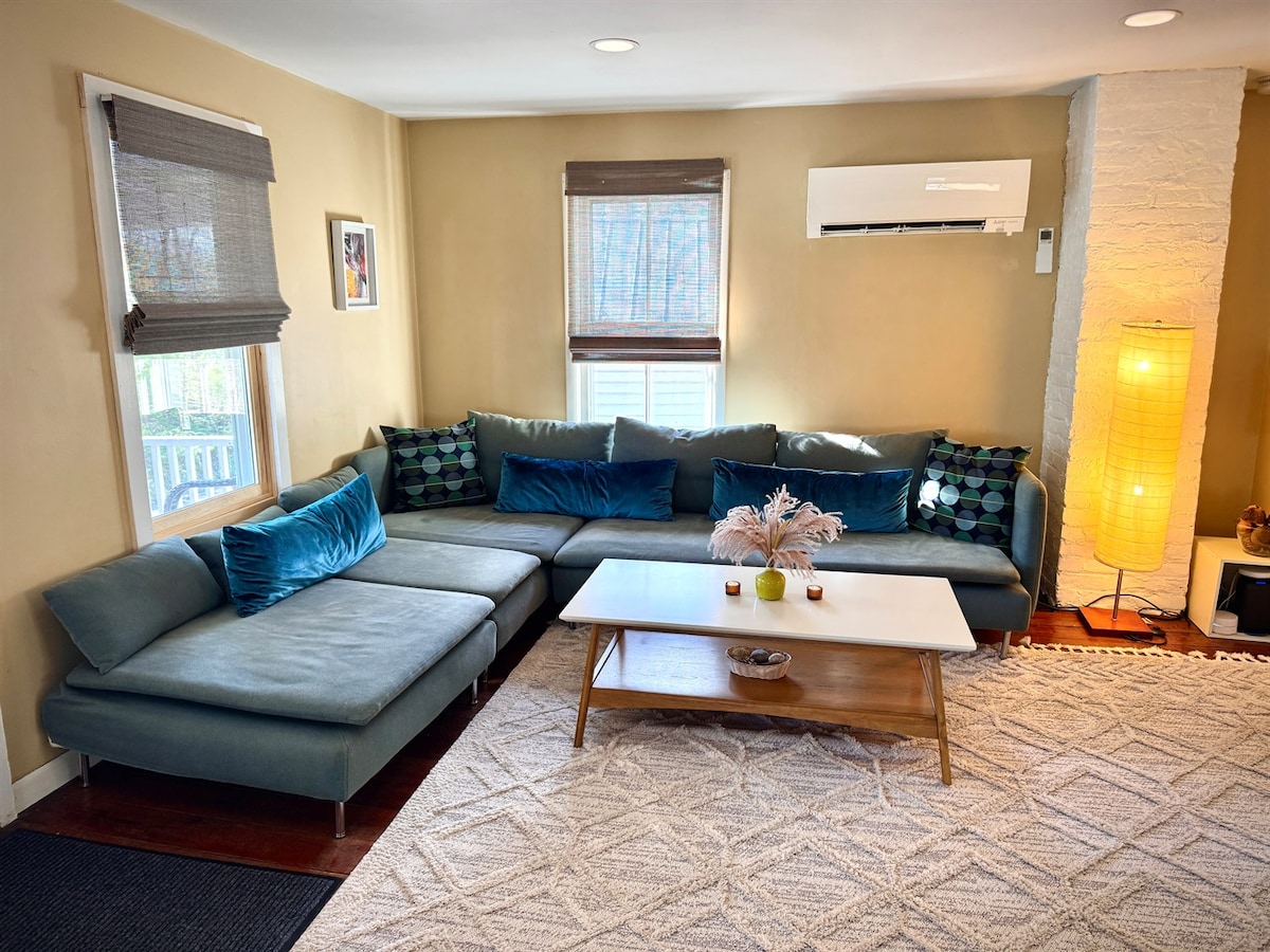 Asseu-te al porxo davanter veient la gent passar i contemplar l'antiga església neerlandesa. Aquesta unitat es troba en una casa unifamiliar construïda a la dècada de 1890 amb detalls vintage que inclouen sostres ornamentals, una finestra de la badia i xemeneies decoratives al costat d'obres d'art contemporani. Unitat sencera de 900 metres quadrats en el primer pis. Inclou 1 dormitori(Queen), cuina privada/menjador, sala d'estar i bany. La casa unifamiliar està restaurada amb detalls bonics i vintage, però també amb totes les comoditats de la vida moderna, com ara wifi d'alta velocitat, termòstats digitals i entrada a l'allotjament mitjançant un pany intel·ligent. * Tarifa addicional única de 25 $ per instal·lar un matalàs inflable per a 2 hostes. Tots els hostes poden utilitzar totes les instal·lacions de la nostra propietat, inclòs el nostre pati. L'apartament es troba al cor de la històrica zona alta de Kingston. Es troba a poca distància a peu de molts dels llocs d'interès del districte de la part alta de Stockade de la primera capital de Nova York. Descobreix el mercat d'agricultors, els restaurants, els museus i els locals de música. La casa d'hostes Bau és fàcilment accessible amb autobús o cotxe. Es troba a 7 minuts a peu de la parada d'autobús Kingston Trailways i a 5 minuts en cotxe de la sortida 19 de l'I-87. L'aparcament al nostre carrer es mesura de dilluns a dissabte de 9:00 a 17:00. També hi ha aparcament gratuït al carrer a la volta de la cantonada.