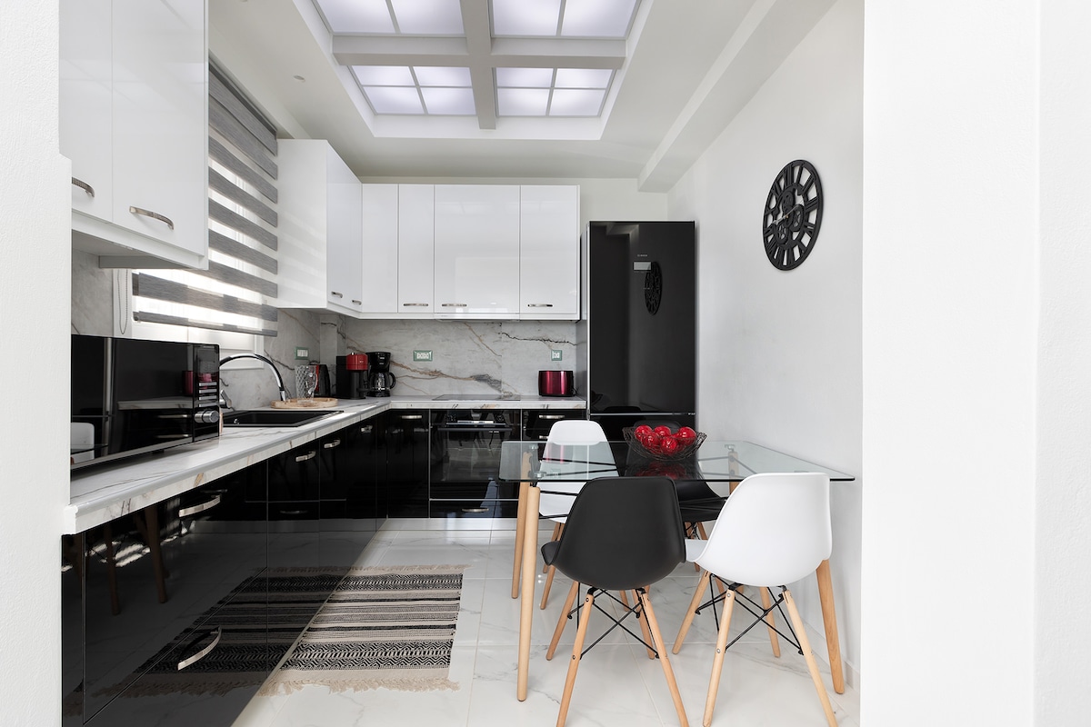 Pleasant accommodation in a residential complex. A renovated (2018) apartment drowned in a cretan garden full of olive trees, lemon trees, carob trees, cypresses, scents and bird ticks. A quite, bohemian, distinctive nest next to the sea for couples, families and even group of friends who seek the bliss of nature, 5 km from Agios Nikolaos.An attempt to overcome the dividing line between indoor and natural environments and reconcile the Greek tradition with modernism and comfort