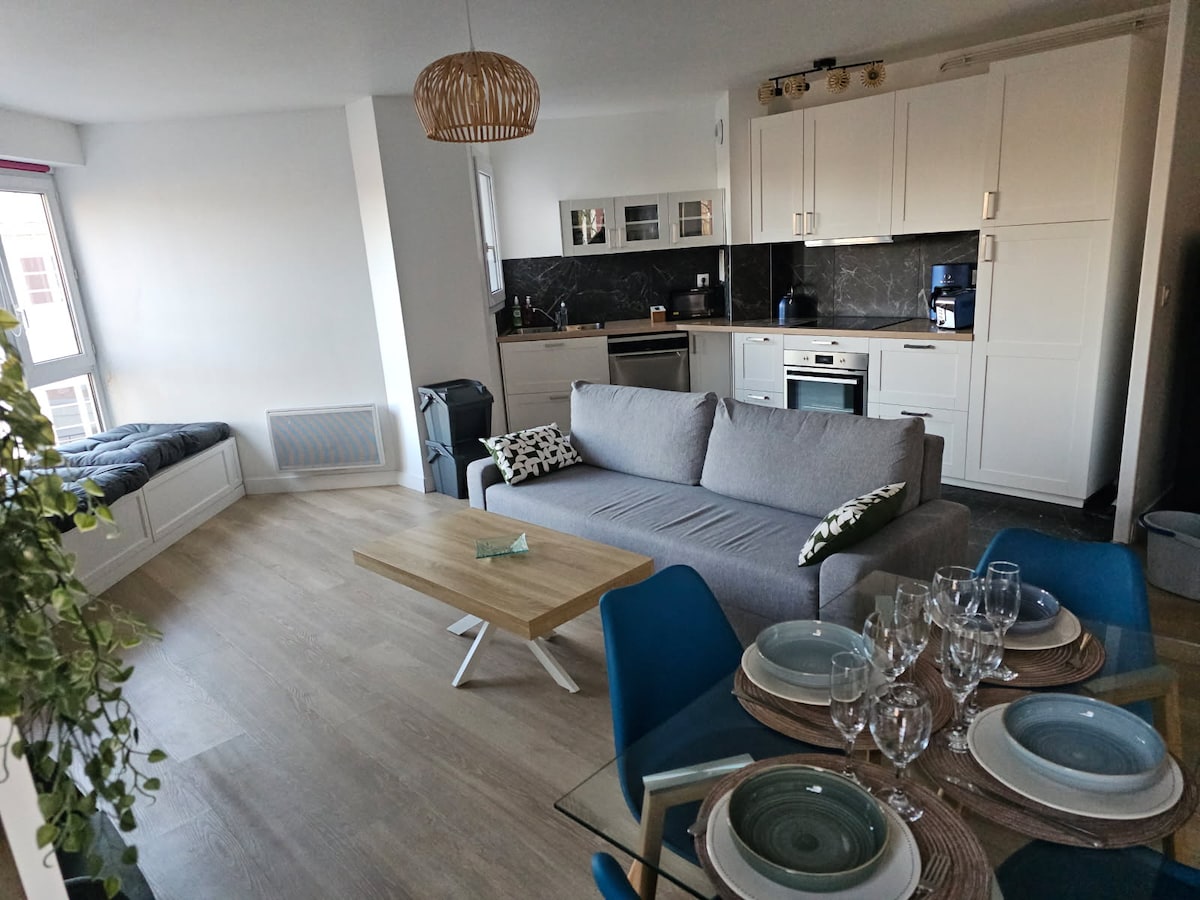 Pis molt agradable i tranquil, a prop del centre de la ciutat d'Epernay. Trobaràs una bonica sala d'estar amb cuina totalment equipada, una sala d'estar amb sofà llit (addicional) i televisor. Un vàter independent. Un dormitori principal equipat amb un llit de 160x200, obert a la dutxa. Un segon dormitori, que es comunica amb el primer (atenció sense porta entre els 2 dormitoris), equipat amb un llit niu i armaris, que és adequat per a nens. Aire condicionat reversible a l'apartament.