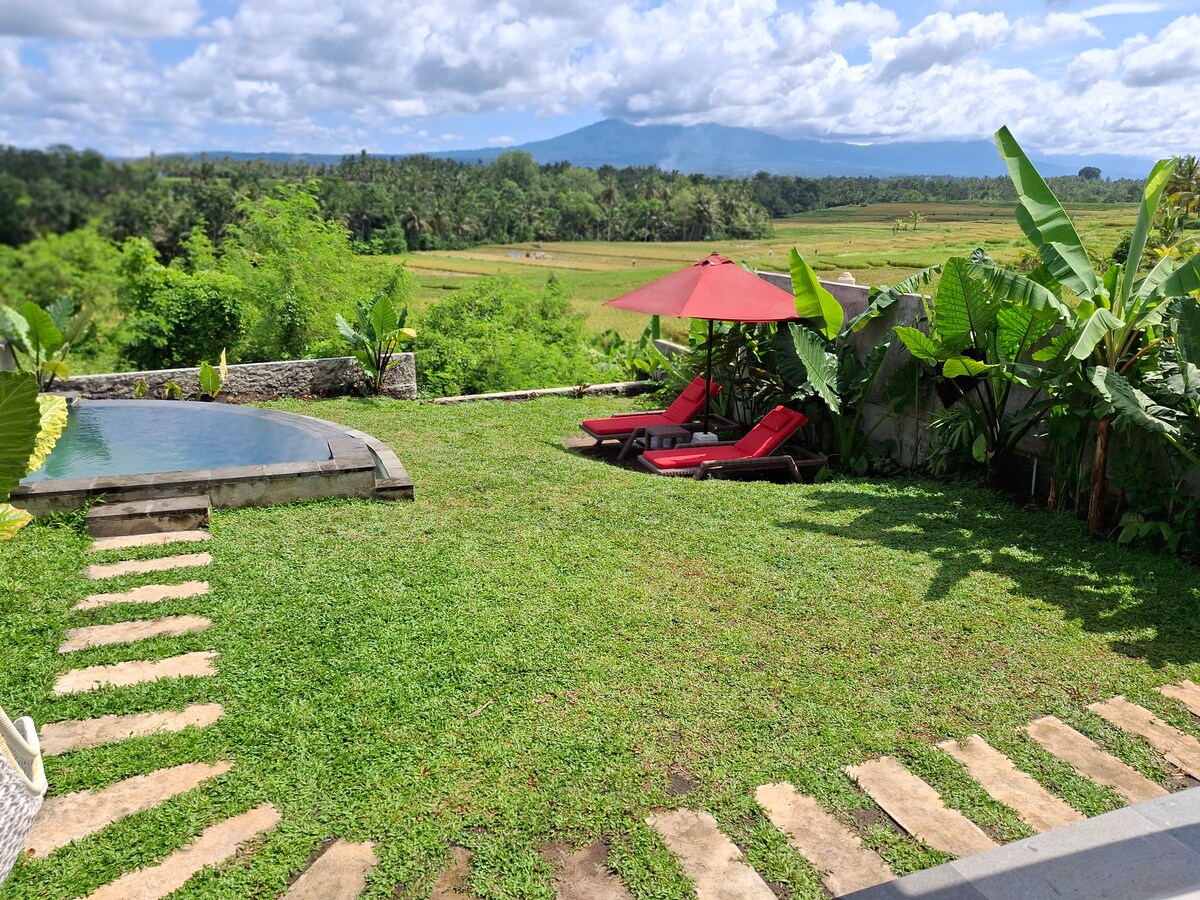 Estàs avorrit i cansat de posar-te en quarantena i desitjar un nou lloc i un nou ambient per trencar-te durant un parell de dies, setmana o mes? La megananda té la resposta. La nostra vil·la de piscina privada té una espectacular piscina infinita privada al capvespre amb vistes al camp d'arròs verd, una combinació perfecta de la comoditat de la vida moderna i l'exòtica de la vida tropical amb tocs de la filosofia artística balinesa, està dedicada a la persona que aprecia el temps de qualitat i l'amor per barrejar-se amb la natura.