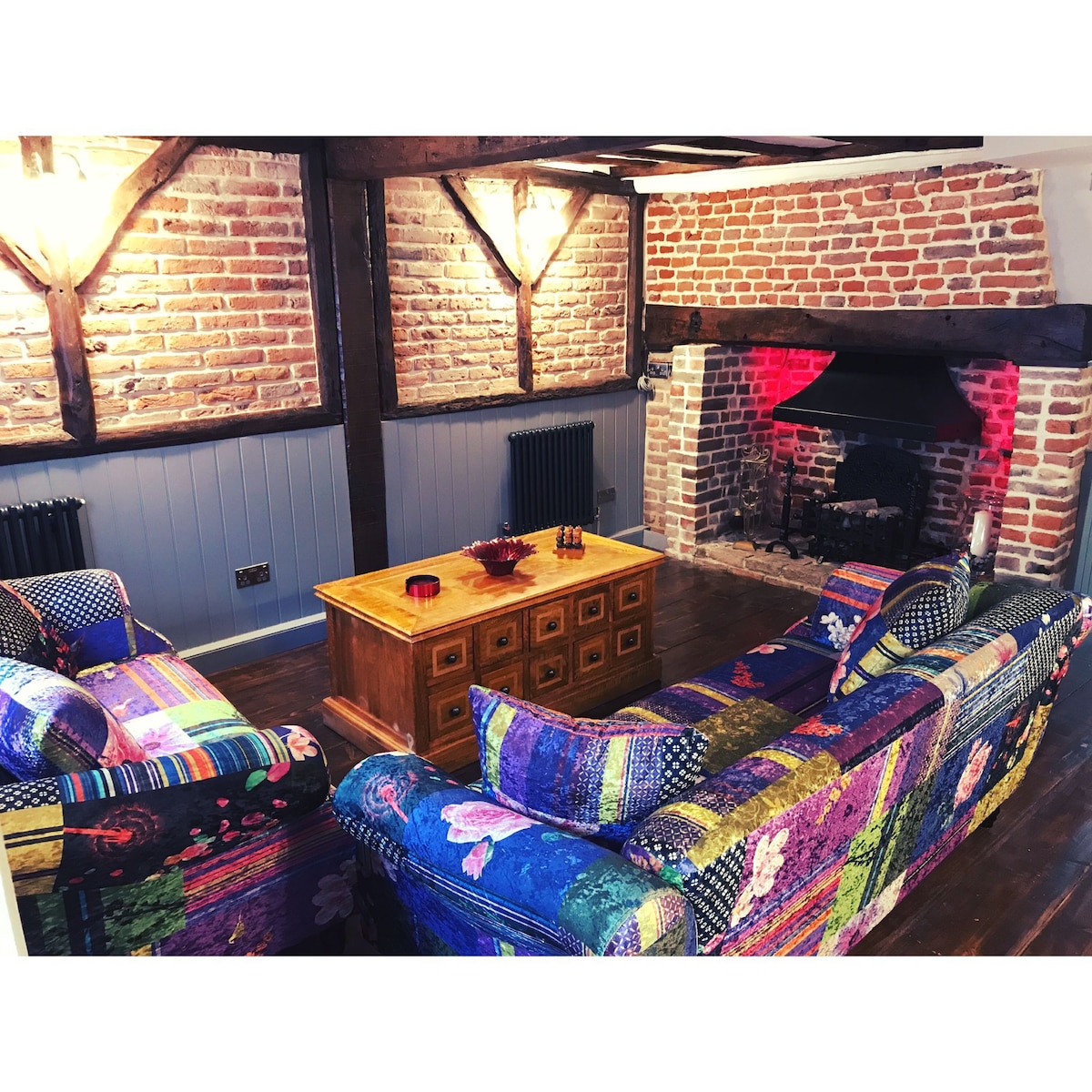Located in Margate’s historic Old Town, this Grade II listed property is just minutes from the beach, Turner Gallery, Dreamland, vintage shops, and award-winning restaurants. The home features a well-equipped kitchen, a cozy living room with a fireplace and foldout couch, and a snug with seating and streaming services. Upstairs offers a master bedroom with a queen-size bed and TV, a smaller room with two single beds, and a private patio with a BBQ for outdoor dining.