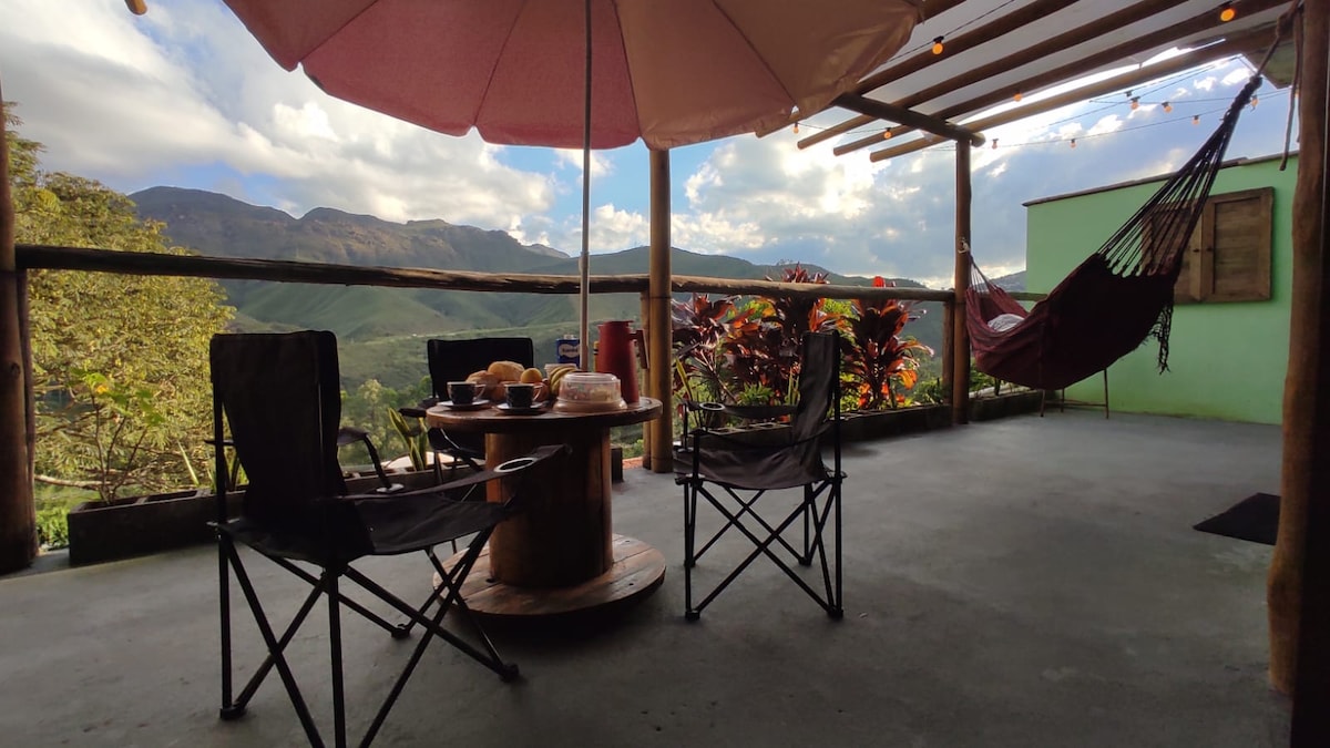 🏠ENTRE EL TREVO DA CHAPADA I EL POBLE DE LAVRAS NOVAS, hi ha DOS xalets individuals. Gaudiràs d'una experiència molt minera, en aquest petit lloc decorat amb artesania local, un pati amb estufa de llenya, foc a terra, gandules, xarxes de descans i hamacs suspesos, just davant d'una de les vistes més boniques del món, la Serra do Trovão, ornamentada per una vall que barreja la Selva Atlàntica i el Cerrado. Vine a gaudir d’una experiència senzilla i reconfortant al nostre petit racó!🌻