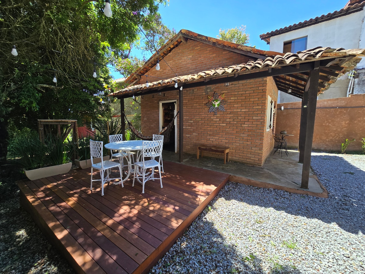 Situada a 100 metres del centre de Lavras Novas (i a 30 minuts d'una cascada), la Casa de Madeira combina la privacitat amb la proximitat al carrer principal. La casa és acollidora i completa. Sala d'estar amb totes les comoditats, llar de foc, habitacions grans, cuina ben equipada i wifi amb la velocitat més alta possible a la regió (35 Mbps). Disposa d'una àmplia zona de jardí. Si t'interessa l'art, també pots adquirir arts originals i autèntiques.
