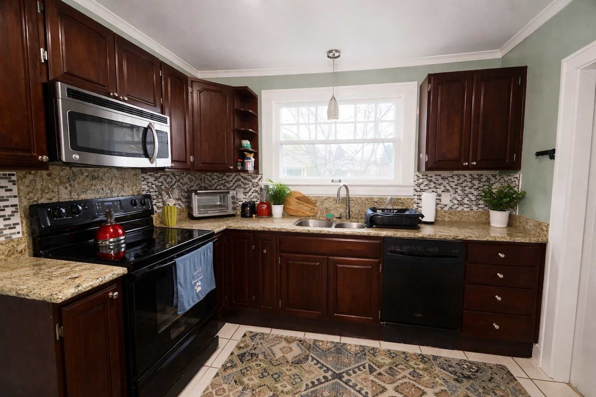 Allotjament ampli de 5 dormitoris i 3 banys, perfecte per a famílies i grups, amb una cuina totalment equipada, solàriums lluminosos i espais d'estar còmodes. Situat a la zona de Butler–Tarkington, a pocs minuts de la Universitat de Butler, del centre d'Indianapolis i dels restaurants i la vida nocturna de Broad Ripple. Ideal per a empreses i vacances. A prop de museus, del zoo i no gaire lluny de l'aeroport, amb accés a l'autopista, en un barri tranquil i segur, ideal per a estades curtes o llargues.