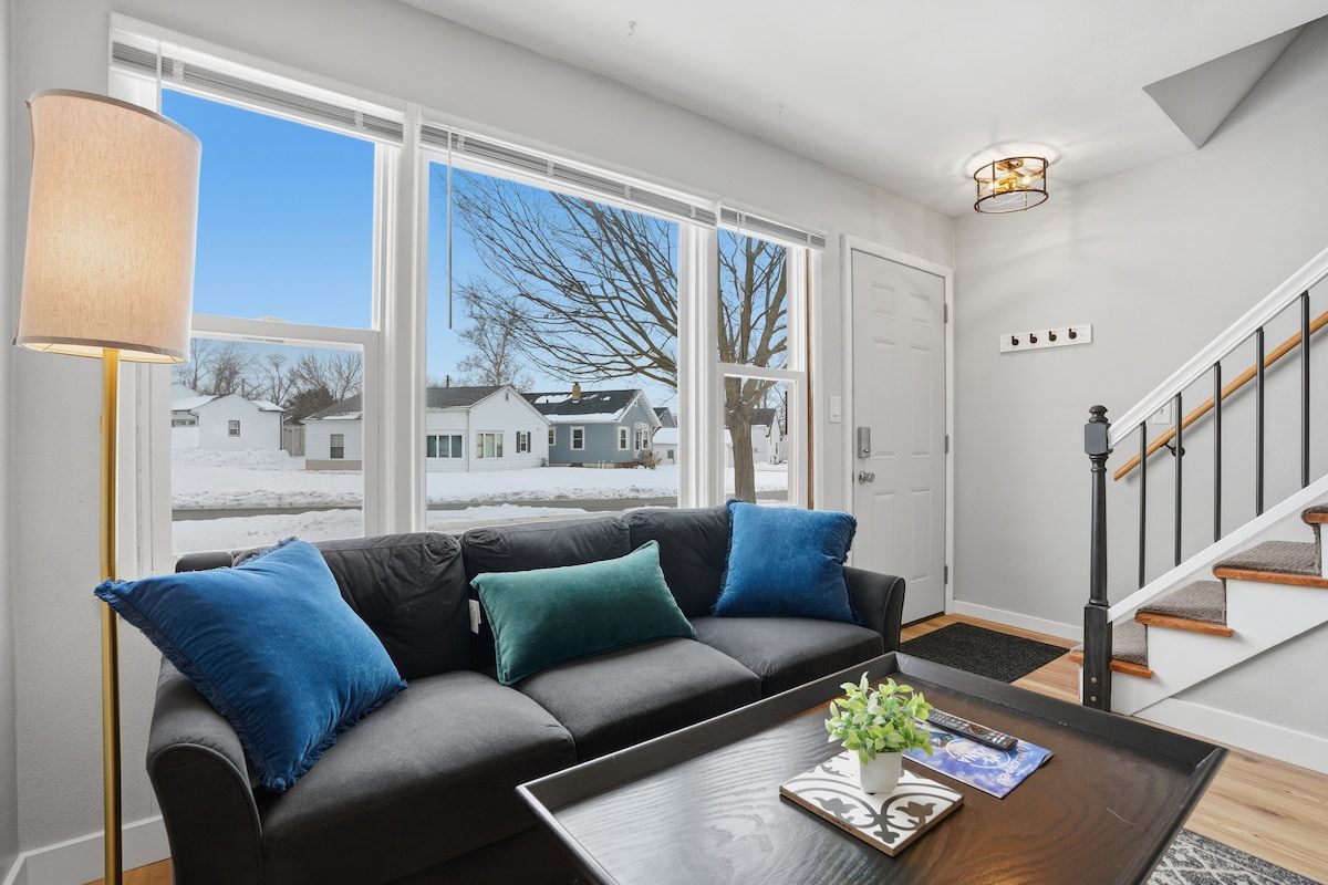 This cozy cottage is an incredible getaway! Come relax, bike or walk to the bars and restaurants or simply enjoy time with family & friends; Or stay over on a work trip for an amazing experience to know what Cedar Rapids has to offer. The beautifully built open kitchen and living area makes for an awesome gathering place. Simply step outside to endless activities, concerts, restaurants etc. Enjoy a peaceful environment with easy access to restaurants and downtown in the NewBo District.