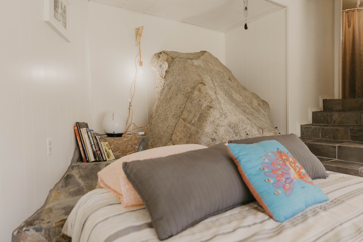 Aquest és un allotjament d'estudi amb 2 llits queen. No hi ha parets compartides amb la casa principal, però el gran pati cobert del davant és compartit, amb una pantalla de privacitat. Estar a prop del Parc Nacional de Yosemite i de Bass Lake és un plus, però Oakhurst té rutes de senderisme, un cinema, un parc comunitari, tot tipus de menjar i una microcerveseria. Respectarem la teva privacitat. L'amfitrió és amable i està disposat a ajudar-te amb qualsevol dubte o preocupació quan et posis en contacte amb ell.