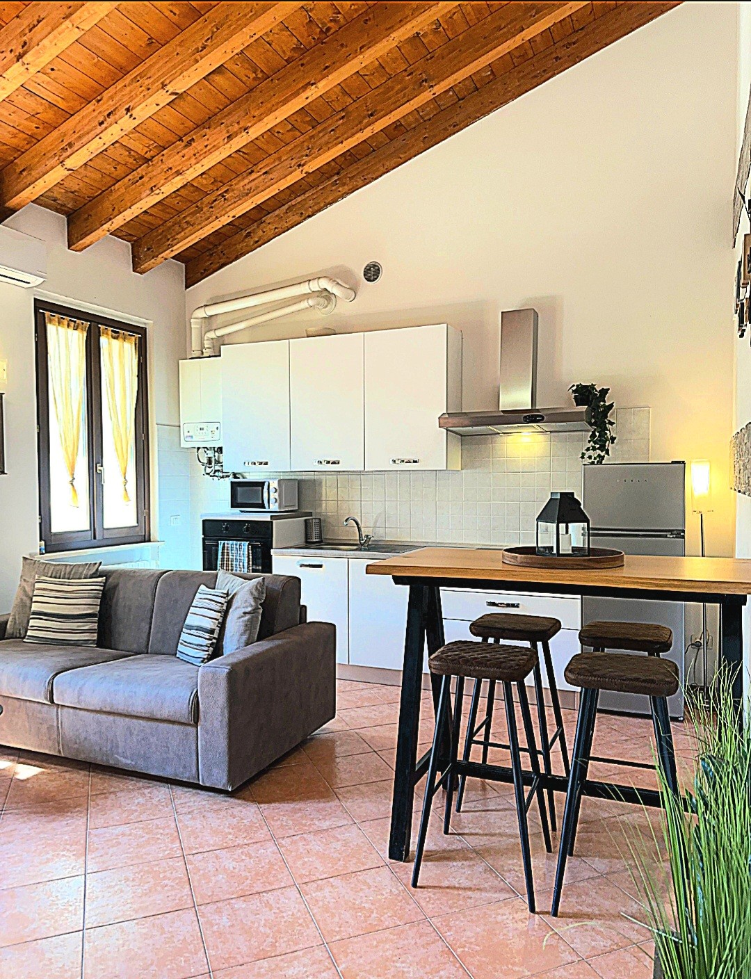 Mansarda ideale per coppia ma può ospitare 4 persone con divano letto in soggiorno. L’appartamento è intimo e silenzioso. Il terrazzino nel tetto è molto carino e rilassante. Appartamento con climatizzatore ben attrezzato