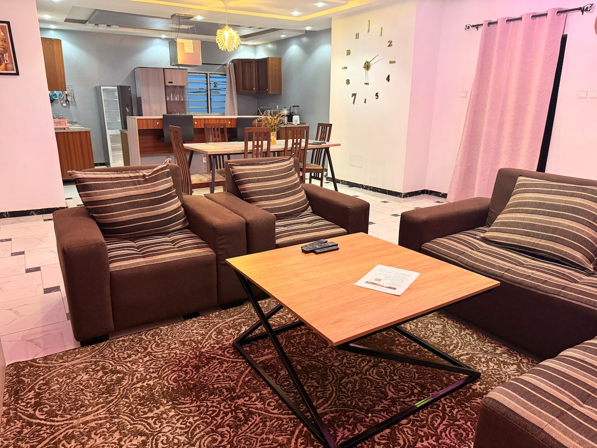 Descobreix l'epítome de la vida urbana moderna al nostre elegant i acollidor pis de 2 dormitoris. Aquest elegant refugi urbà està dissenyat tant per a la comoditat com per a la comoditat, i ofereix un paradís perfecte per a amics, parelles o professionals de negocis. L'allotjament es troba darrere de la base militar d'Adidogomé i es troba a 25 minuts en cotxe de l'aeroport internacional Gnassingbe Eyadema. Es troba a 5 minuts en cotxe de Miami 228 i Taboo, a 6 minuts de Carrefour Limousine i a 7 minuts de Rooftop Opium.