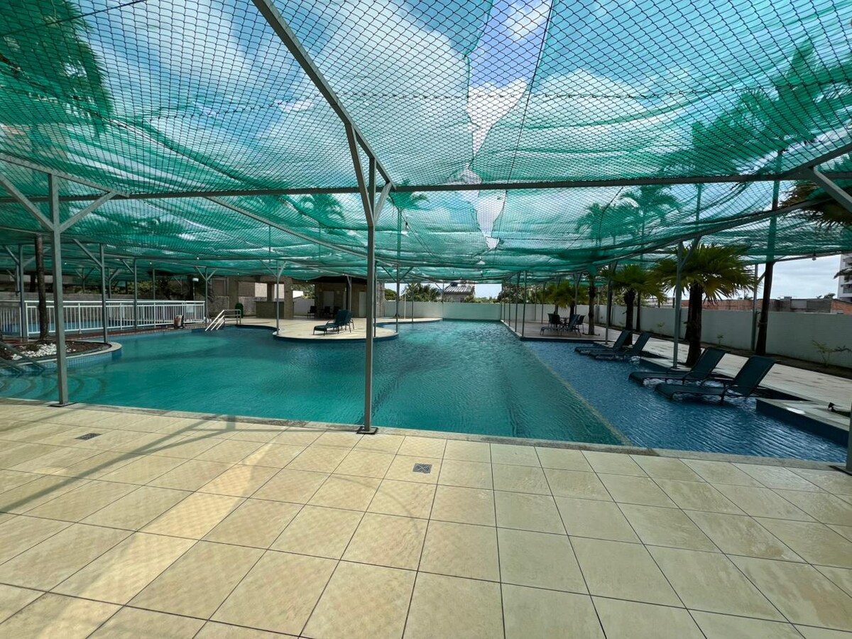 Comoditat, funcionalitat, estil i seguretat. Relaxa't amb la teva família en aquest apartament complet de 2/4 a Ed. Fit Coqueiro 1. Habitacions amb aire condicionat, cuina equipada, rentadora i assecadora, wifi d'1 GB i tots els estris bàsics per a una estada sense preocupacions. Gaudeix de les comoditats del pis: piscina, botiga de comestibles i conserge amb seguretat les 24 hores. Ubicació estratègica, amb fàcil accés a les carreteres principals, botigues, supermercats i llocs d'interès de la ciutat.