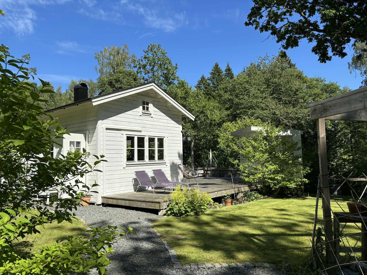 Nice cottage next to a smaller lake in beautiful forest. Description: Swimming and fishing, undisturbed location. Berries and mushrooms in beautiful forest. Your own pier with rowing boat. Modern cottage with fully equipped kitchen. Fireplace with free access to firewood. The cottage has a large veranda with outdoor furniture and beautiful view over the lake. About half an hour´s drive to Gothenburg with among other things Liseberg. 35 km to Borås with zoological park and shopping.