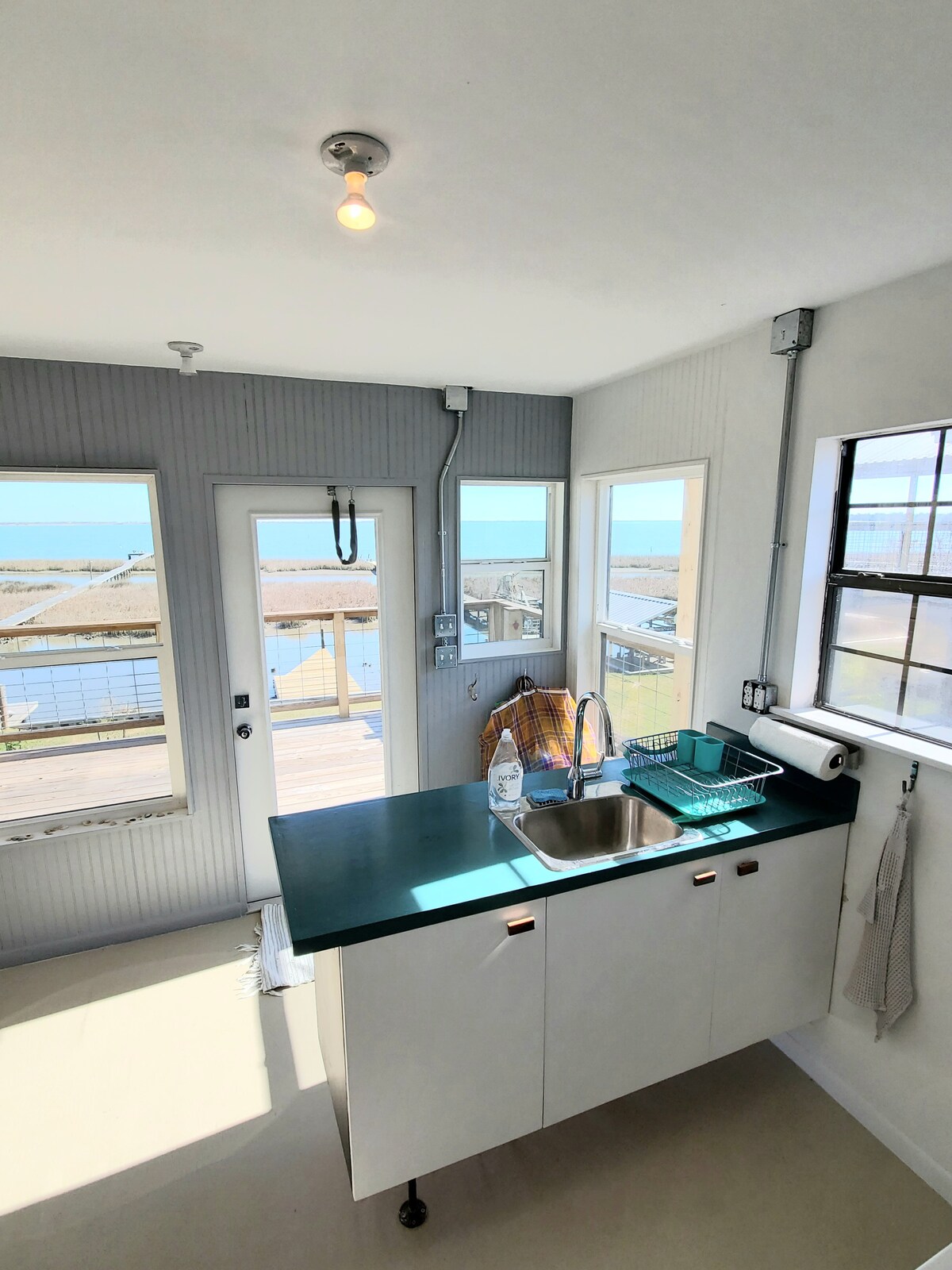 Sleep up to 6 in this beautiful, super clean, 2 BD, 2.5 BA house just ten steps from the CO River and a quick 3-min drive to Matagorda Beach. Bring your flip flops, beach towel, and favorite book to relax on one of 2 decks...or bring your fishing gear and catch large fish right off the dock. You can even clean your fish right there and grill them on the BBQ grill! Bring your boat or kayak and push off from the dock. Make great memories with the entire family in the slow-paced sea town!