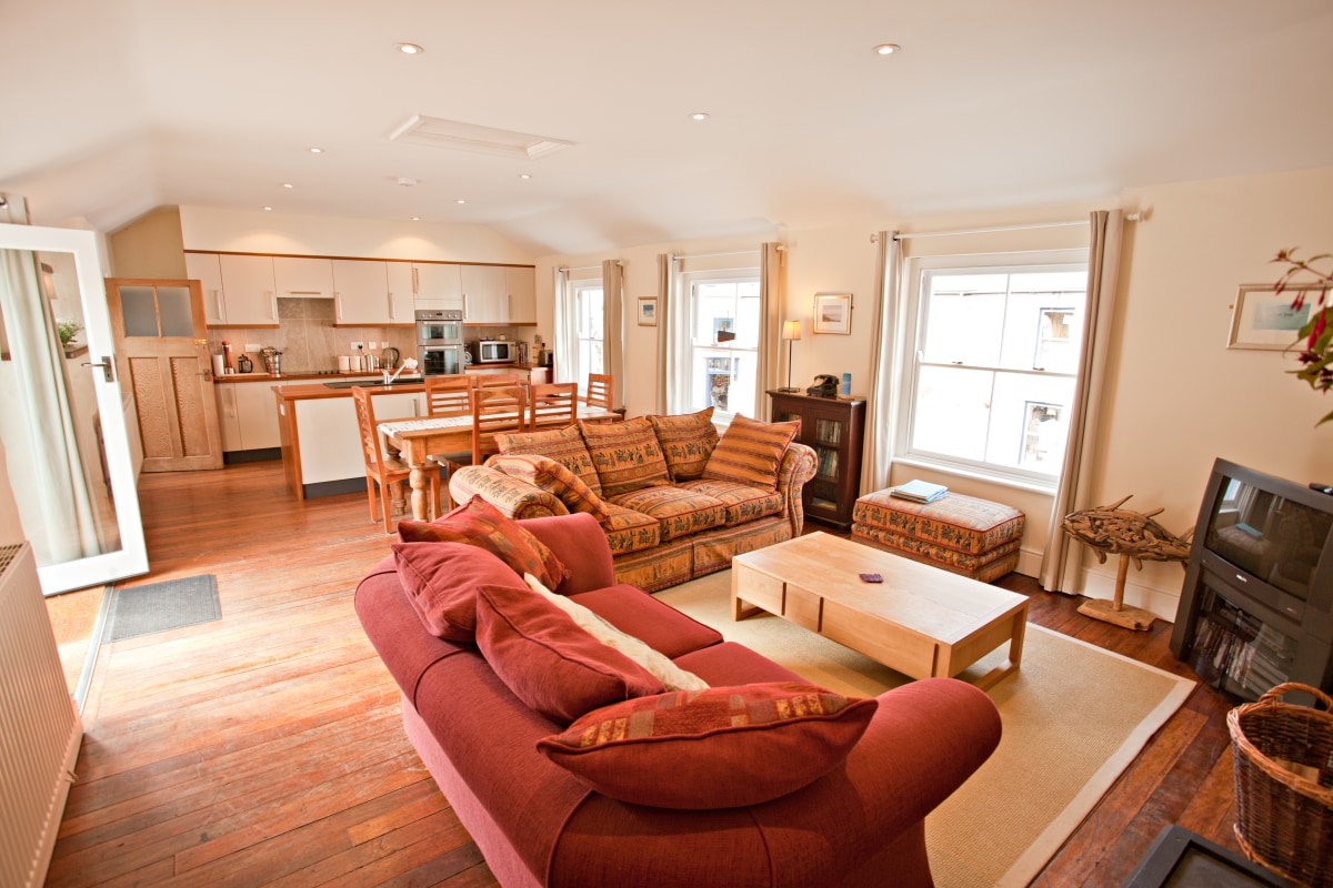 The Sail Loft is a stylish, comfortable & carefully renovated first-floor apartment in the centre of Lower Solva, just a minute from the beach, harbour & coast path. Sleeps 4 in 2 bedrooms - Double room with en-suite bath, shower, twin basins & heated floor. Twin room with small en-suite wet room & heated floor. Large open-plan well appointed island kitchen, dining & sitting room, comfy sofas, TV, Wood burner & radiators. Large south facing deck, Pass supplied for nearby carpark (50m).