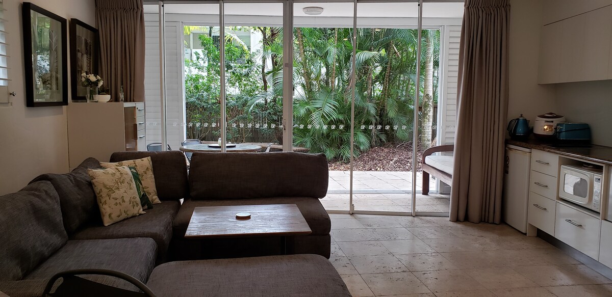 La nostra suite està situada al cor de Noosa Heads. Es troba a 10 minuts a peu de Noosa Hill fins a Hastings St, Main Beach i el centre comercial. Es troba a poca distància a peu del riu Noosa i del parc nacional de Noosa, un dels llocs costaners més impecables i naturals d'Austràlia. La suite està a la planta baixa, ben equipada i molt ben situada, de manera que estàs al centre de tot i, però molt privat, amb el teu propi pati. El complex disposa de barbacoa, piscines, spa, sala de vapor, gimnàs, estudi de ioga i aparcament gratuït.