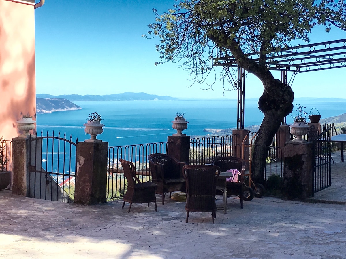 Depandance amb terrassa panoràmica i vistes impressionants al mar i al golf de les Espècies, en una vil·la històrica del 1880 renovada i envoltada de verdor, amb oliveres i arbres centenaris, amb el parc de Cinqueterre al darrere i els Alps Apuans amb les pedreres de marbre al davant. A 7 km del mar de Lerici, Portovenere i Rio Maggiore.