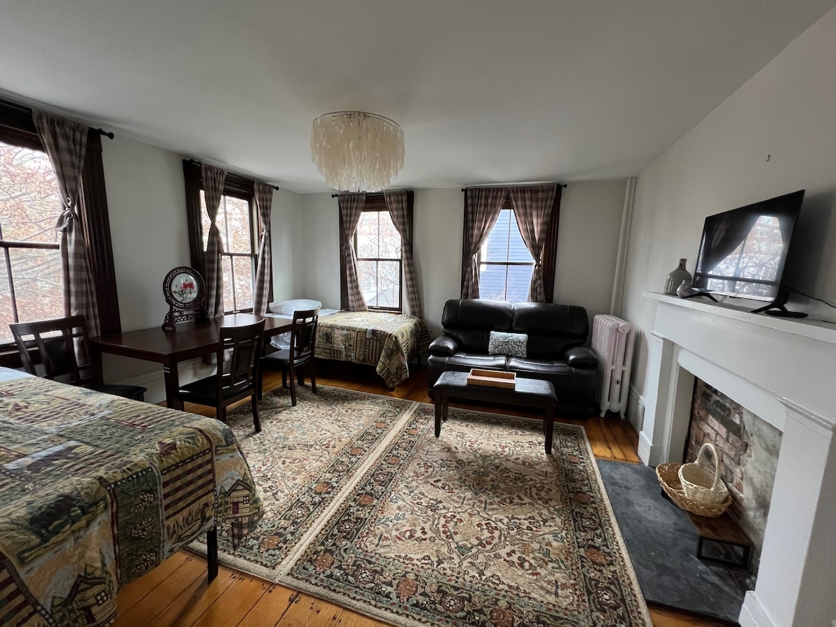 Aquest pis de 600 metres quadrats amb terrassa situada al tercer pis d'una antiga casa victoriana és lluminós i espaiós. Els arbres envoltats es converteixen en un santuari, un lloc on sentir-se com a casa. Situat en el centre i a poca distància del MIT, Novartis i Harvard. Es troba a pocs minuts a peu de l'estació de metro Central Sq. L'apartament està dissenyat de manera eficient amb un ambient loft. Disposa d'un dormitori amb llit «king size», bany, cuina i zona d'estar amb un sofà llit llit llit i llit plegable, a més d'una coberta de 230 peus.
