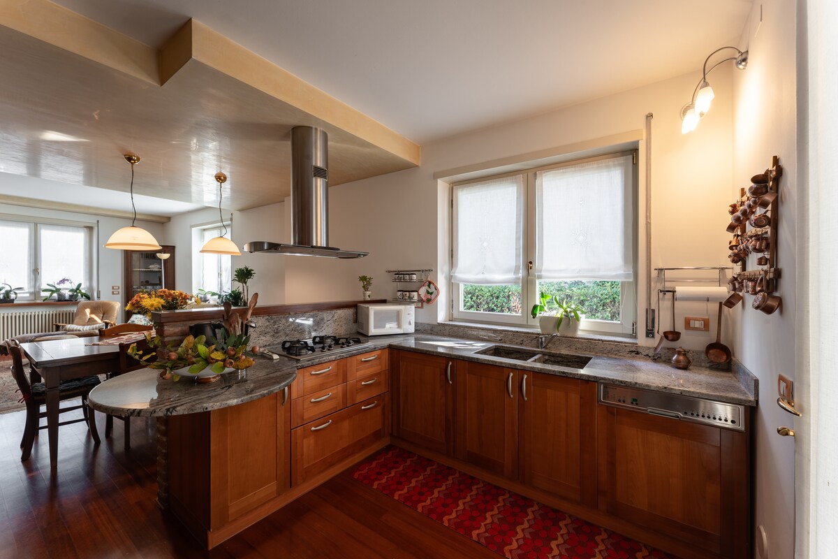 La base ideal per explorar les meravelles del Vèneto: a només una hora en cotxe de Venècia, Verona, Pàdua i els Dolomites. Una gran i elegant casa de vacances per recarregar i gaudir de les vistes panoràmiques del castell de Marostica. La casa és apta per a animals de companyia i accessible, perfecta per a famílies, grups, parelles i viatgers sols. La casa té 4 banys, 4 dormitoris, cuina, sala d'estar, jardí tancat amb barbacoa, terrassa solàrium i racó de ioga. A prop d'aparcaments gratuïts, caixers automàtics i supermercats.