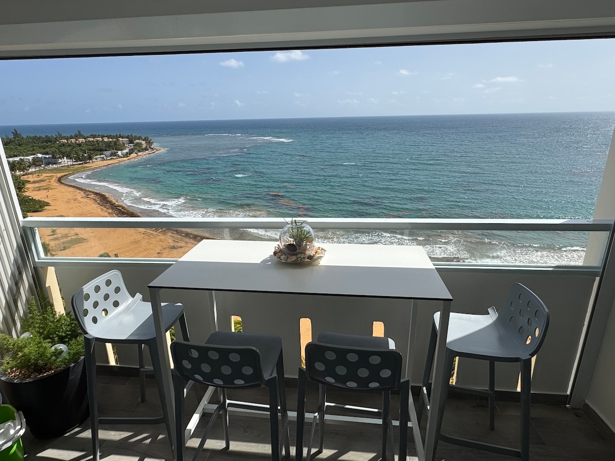 Modern i nou. Vistes al mar de primera fila des del balcó privat i la sala d'estar. Entrada tancada amb plaça d'aparcament personal. Aire condicionat en totes les habitacions i impecable. Tovalloles de platja, nevera i cadires disponibles. Sabons i aperitius especialitzats inclosos. Jocs familiars. Matalassos amb la part superior acolchada, tovalloles de felpa i roba de llit. Televisors intel·ligents, wifi i cuina equipada. A poca distància a peu dels quioscs, a prop d'El Yunque, els quadres de la Hacienda Carabali, les motos aquàtiques, la badia bioluminiscent, el golf i altres. A 35 minuts de l'aeroport. A 35 minuts de l'aeroport.