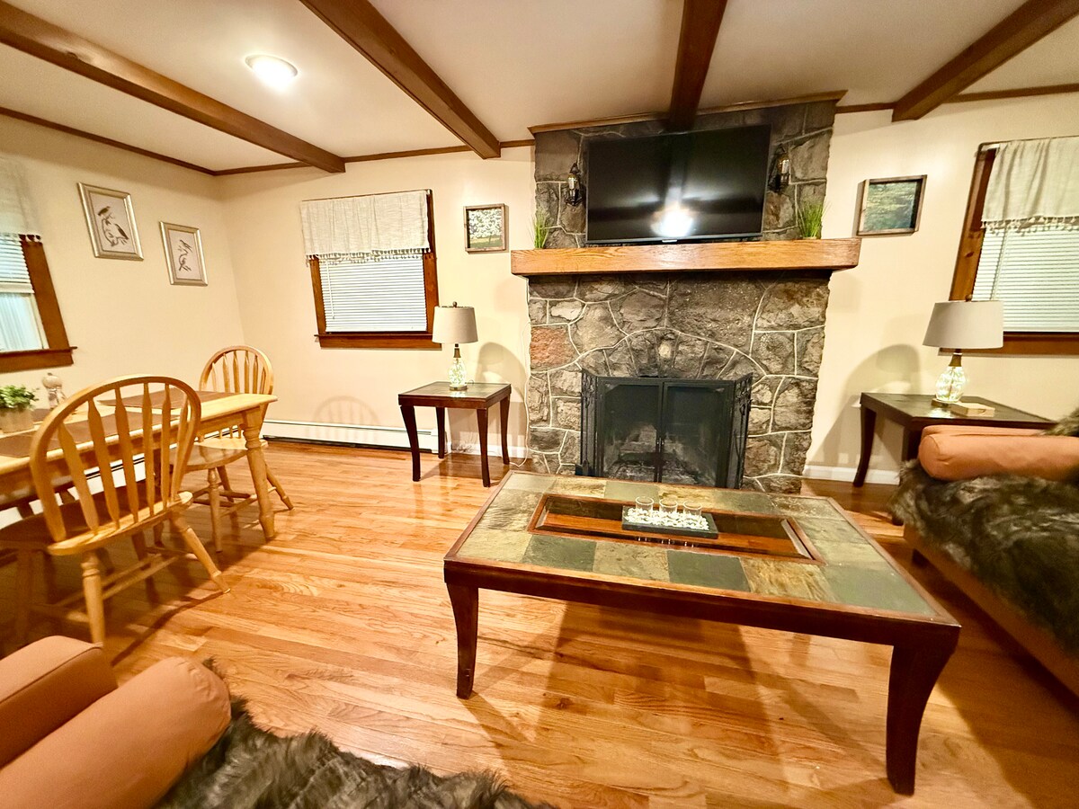 Cozy and recently renovated 1940s lakefront house right on the water. Enjoy views of the lake all around the house. Private dock, fire pit, and cedar hot tub. Under 2 hours from NYC, and 20 minutes to nearby shopping and restaurants as well as great hiking trails. High speed Internet and TV provided.