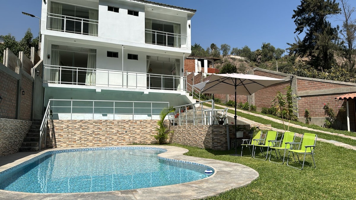 Escapa't de la ciutat i gaudeix d'una experiència única en la nostra acollidora casa de camp. Gaudeix del millor clima a prop de Lima, amb sol tot l'any. Piscina, jardí gran, zona de graella i forn d'argila. Situat en un condomini de només 5 cases independents. Espais còmodes i ventilats. Cuina totalment equipada. Televisor i wifi d'alta velocitat. Aparcament privat. S'admeten animals de companyia. Perfecte per a famílies, parelles o grups petits que busquen pau i tranquil·litat. Relaxa't al camp!
