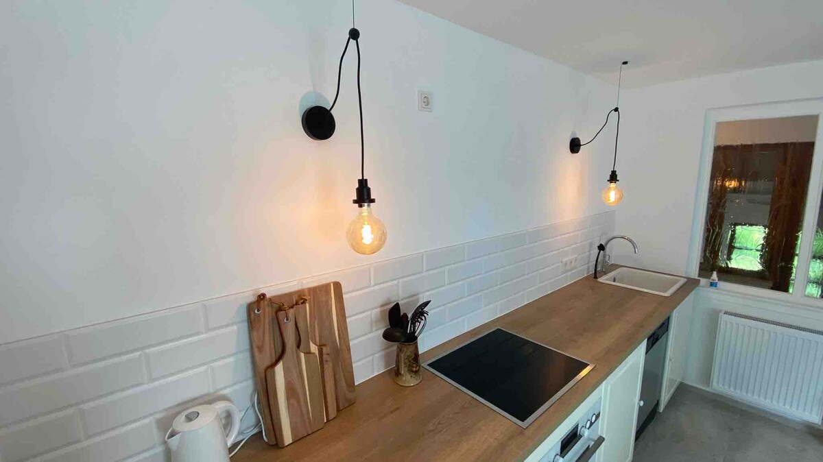 Casa rural independent a la regió de la biosfera de Bliesgau, just al costat del bosc amb àmplies vistes panoràmiques. Les grans finestres i el terra de fusta creen un ambient lluminós i acollidor. La fusta cuidada i la cuina totalment equipada combinen comoditat i disseny. L'estufa de pèl·lets i l'aire condicionat garanteixen un clima agradable. Amb llit alt, vestidor, terrassa, wifi, televisor, garatge per a bicicletes i rentadora: un refugi per a la natura i l'oci.