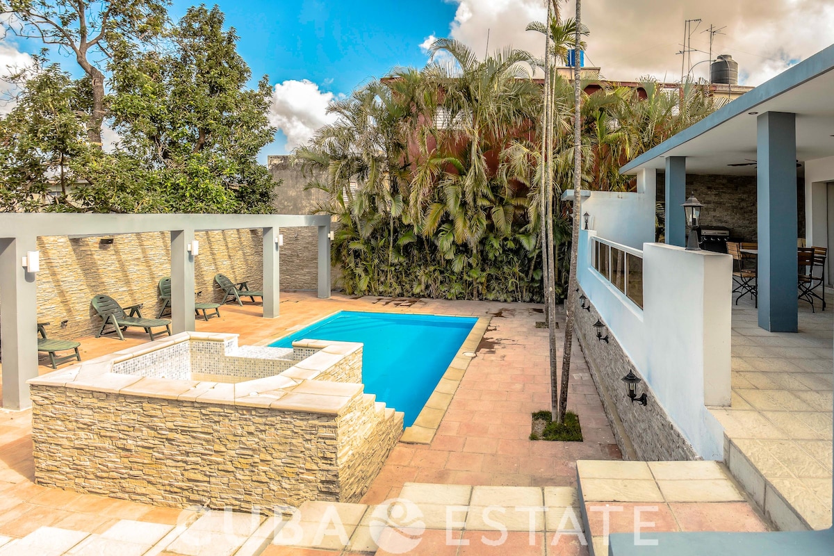 A classical home with the best service and big lovely spaces, pool, nice bedrooms, styling furniture, open spaces, terrace with sun chairs. WIFI available but not include on the booking price. Please take into account our home rules, no visitor will be allowed, only the ones on the reservation or only family will be allowed for visits. Enjoy multiple services, we have solar panels for electric if any electric problem happen. Choose support of the Cuban people as travelling category to book