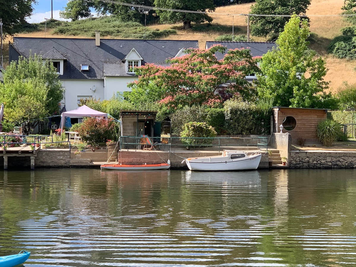 Regala't una escapada a la natura en una autèntica casa de guardes de resclosses al cor de la regió de Mayenne Amb capacitat per a 6 persones, totes les comoditats modernes, vistes al riu i accés directe al camí de sirga Vélo Francette Gaudeix d'un entorn tranquil, acompanyat pel murmuri de l'aigua… i d'un toc de convivència amb la cafeteria a l'aire lliure que hi ha a prop: benestar i activitats, tot respectant la teva tranquil·litat. 🌿 Massatges, bicicletes, caiacs, cistelles gourmet… Tot està pensat per garantir una estada relaxant al teu ritme.
