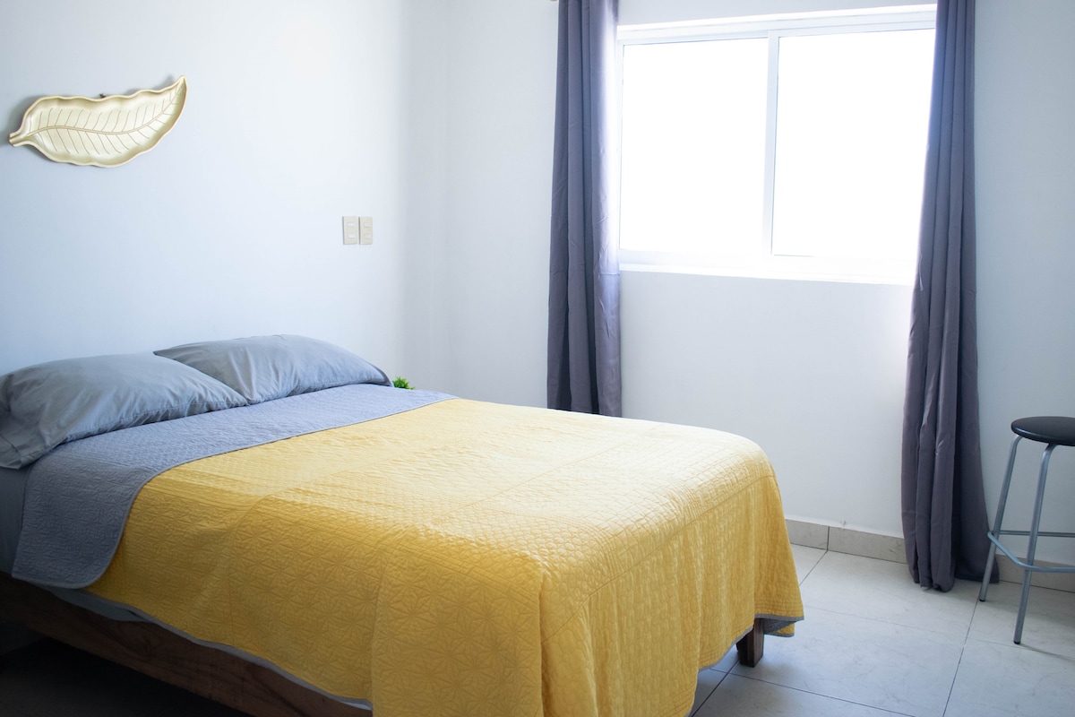 Aquest acollidor pis situat al tercer pis (sense ascensor) ofereix comoditat i és perfecte per descansar després d'un dia a Mazatlán. Disposa d'un llit doble, TV de 32", aire condicionat, bany amb cuina integral i un pati gran. La seva millor qualitat és la seva ubicació en una zona molt tranquil·la, a prop de l'Estadi de beisbol, Nuevo Aquario Mar de Cortés, Parc Central i Playa. Vine i gaudeix d'una estada agradable en aquest espai encantador i acollidor!